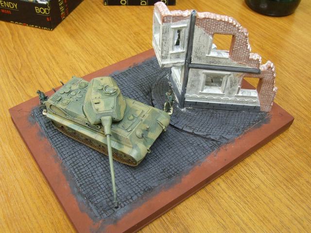 Королевский тигр - Дракон, Пантера - Хасигава, солдаты - италери вроде) 72 масштаб, будут добавлены кирпичи разбросанные, пару бочек.