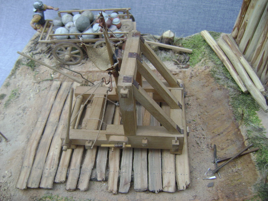 Выглядел он одиноко и я решился на небольшую миниатюру.Фигур подходящих не нашлось,решили реанимировать набор римлян Донецкого завода игрушек.С помощью милипута переделал шлемы,наплечники,оружие и вообще одежду.Сделали римскую телегу и брошенную дакийскую.Основание из фанеры задули строительной монтажной пеной, обработали ножом и наждачкой, создали рельеф. Зашпатлевали опять таки строительной готовой акриловой шпатлевкой. Гуашью придали нужный оттенок. Для грунта взяли песок, молотый кирпич, землю, старую перегоревшую штукатурку двух цветов,получилось пять оттенков грунта. Трава из пакли, мха,сушенного укропа и крашенных опилок, куст из веника.