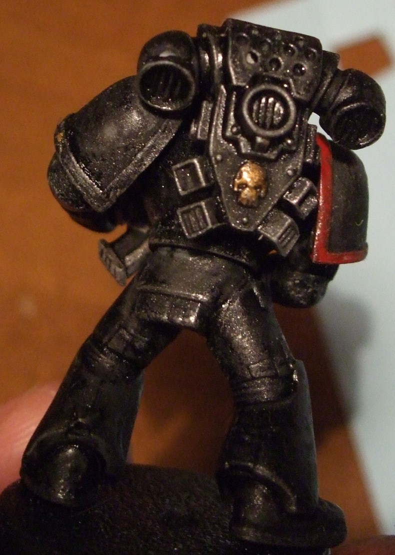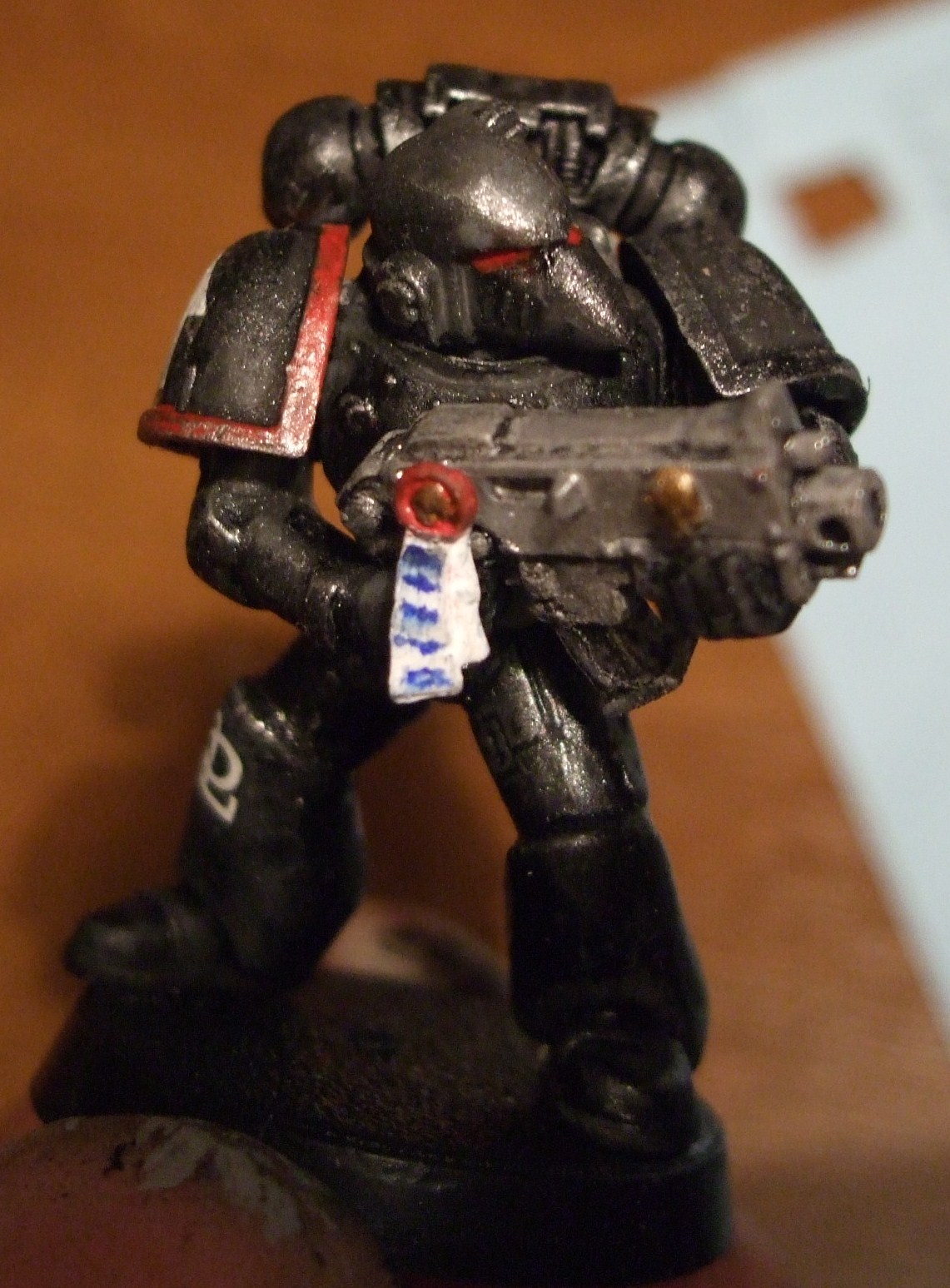 Собственно космодесант из набора games workshop space marine combat squad.красился нитрой и акрилом, рассверлен ствол, перевешена печать чистоты с ноги на болтер