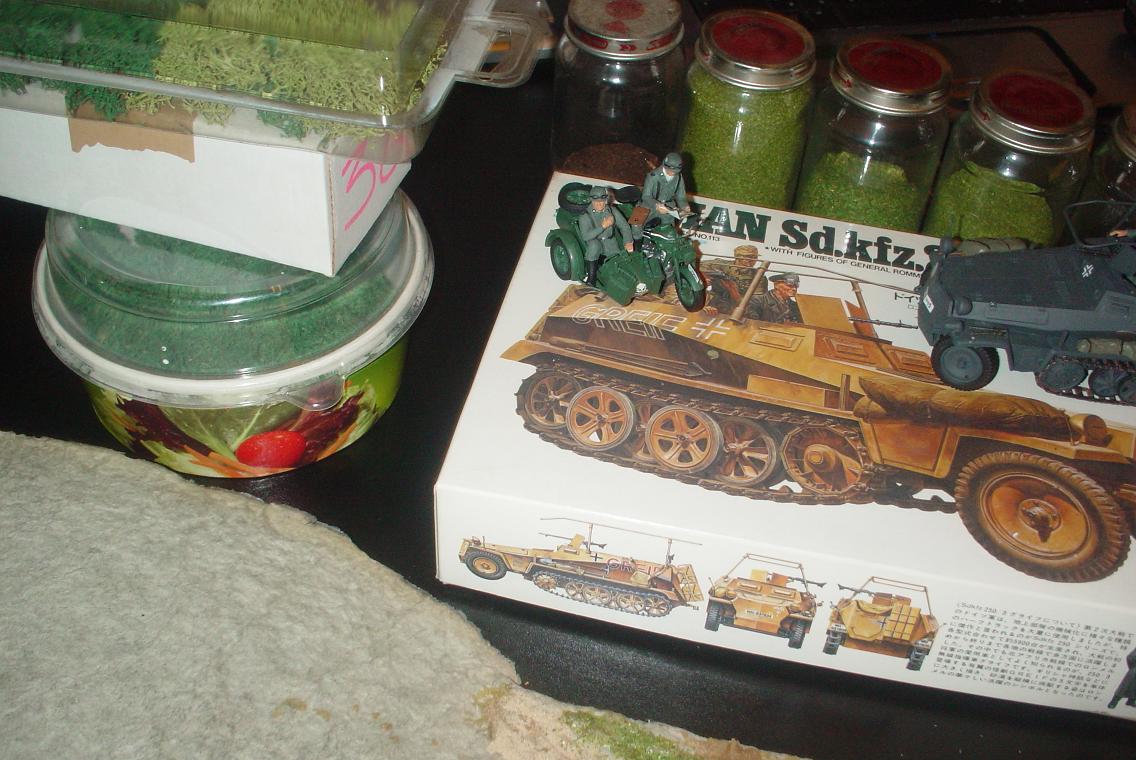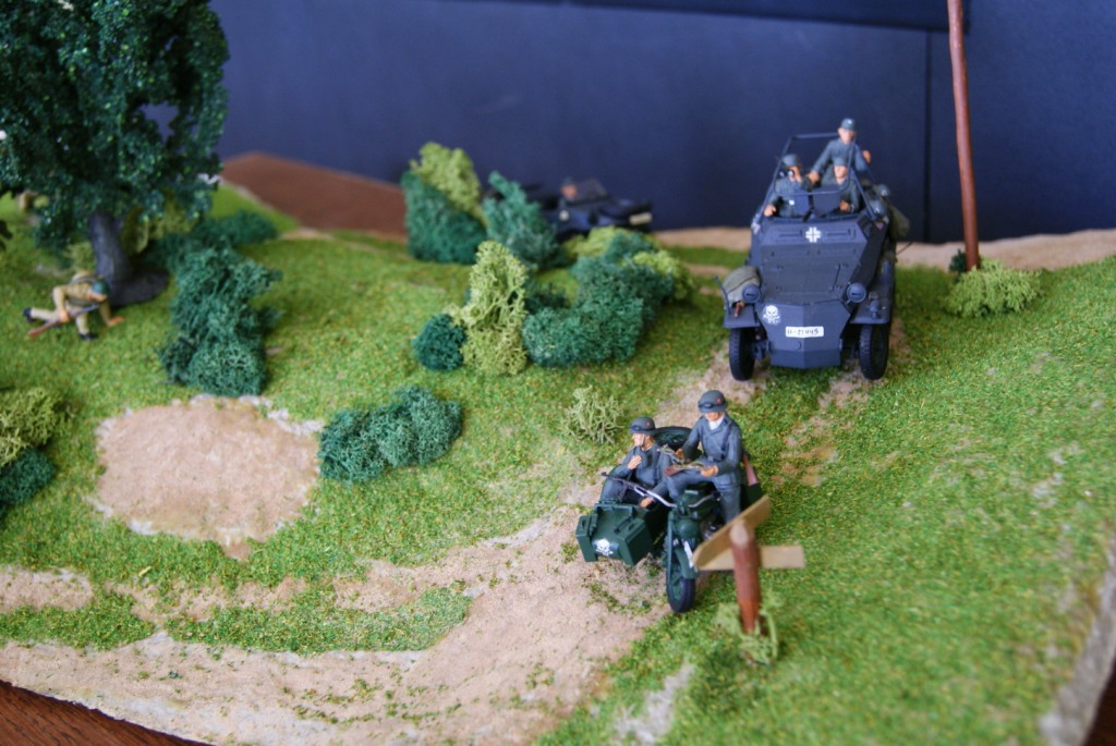 Недостатков куча, многие вижу сам. Следы от гусениц просто не было времени делать, много замечаний по немецкой форме, грязи на технике нет. Провода на столб повесить не успел и т.д. и т.п. Жду Ваших замечаний. Пока выкладываю фото "процесса". Через пару дней будет результат.