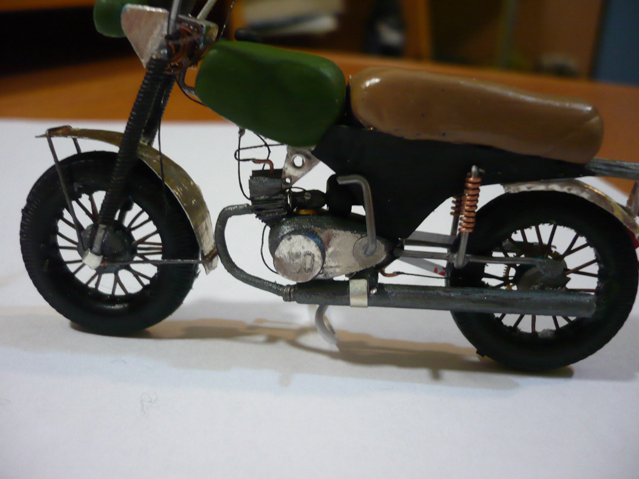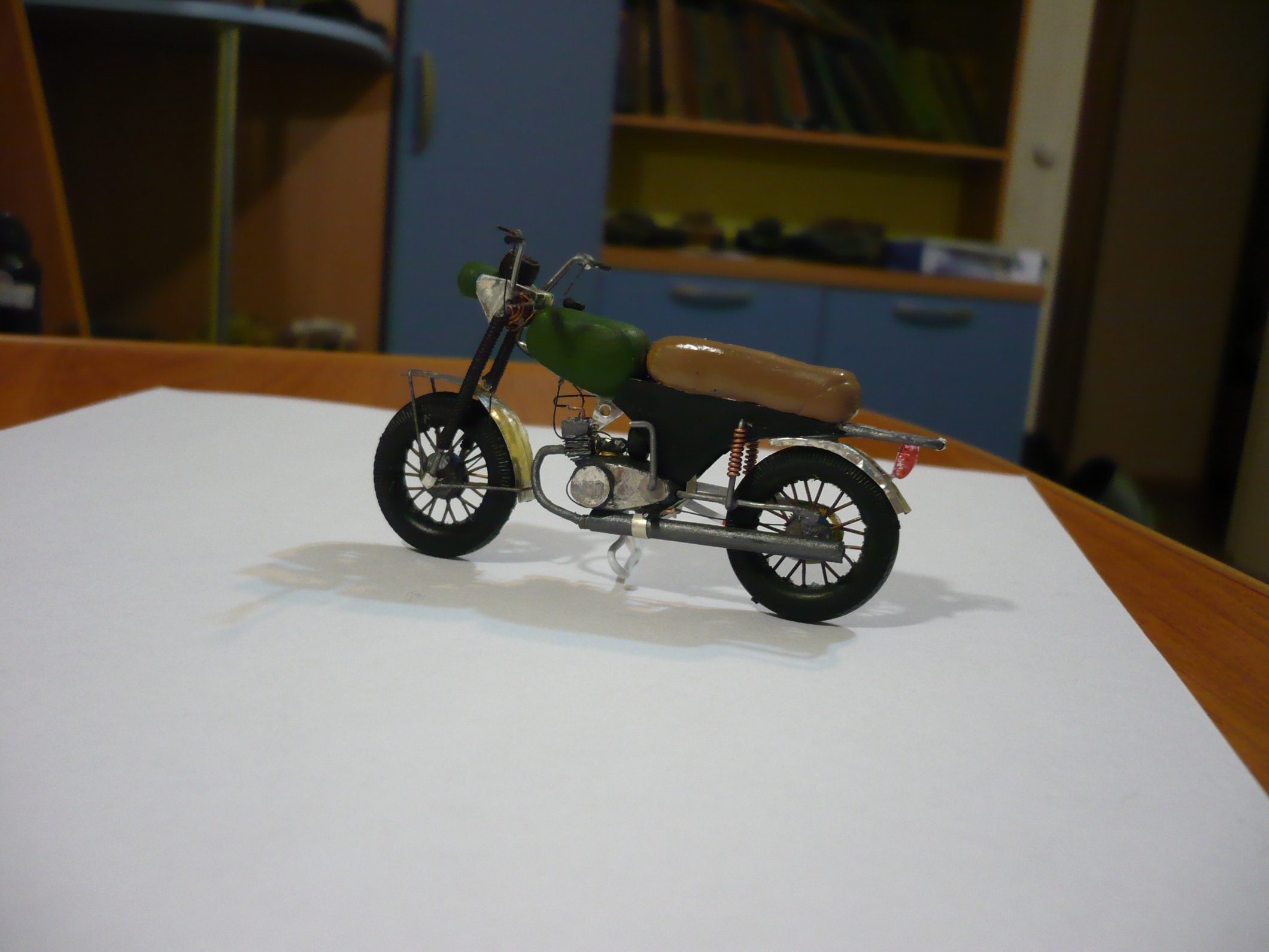 моделированием занимаюсь с 11лет сейчас мне 14. это первая моя работа, которую я полностью сделал своими руками. Использовал пластилин, фольгу, провода колеса из под газ-ааа .Клеил супер клеем.красил акрилом от Звезды