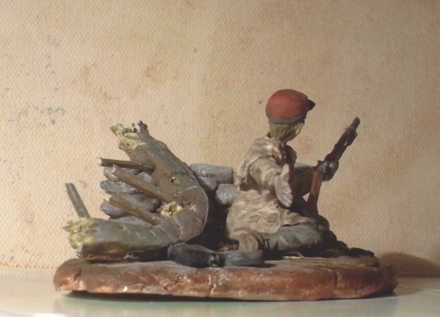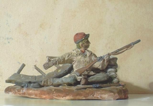 Представленная работа изображает артиллериста армии Конфедерации времён гражданской войны в США. Весна 1865 года,отступление.Бой на подступах к родному городку артиллериста. Пушка разбита, пехота начинает понемногу отступать. Но как показаться в родном городке бегущим с поля боя? Парень подхватил ружьё... "Патроны!" Но протянутая рука повисла в воздухе...