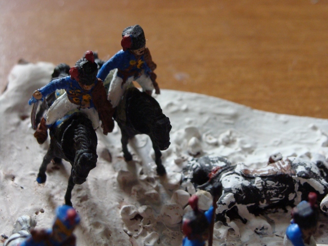 Слово одно напрашивается - ужас!!! Мало того, что во многих местах на фигурках видня совершенно не нужная там коричневая краска, так ещё и аккуратность исполнения - ни к чёрту. Композиция во многом бы выиграла, если бы вы просто аккуратно всё покрасили.