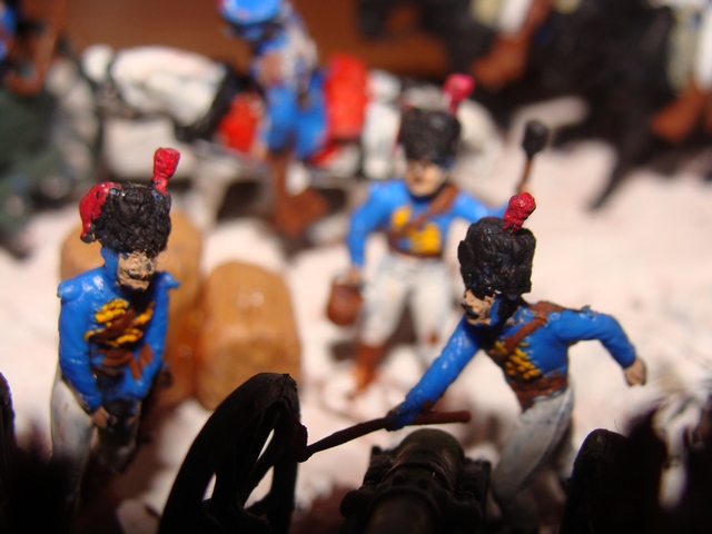 Никита, посмотрите на картинку: во время боя все эти люди бегают вокруг орудия. 1,5 метра им мало, они будут тупо мешать друг другу. Тем более если прилетит меткое ядро в ответку:так можно и оба орудия потерять. И все фигурки набора не разместить. И указатель с огневой позиции уберите, он мешает артиллеристам.Кстати, огонь ведется по крепости? Если да - то почему указатель в другую сторону указует?