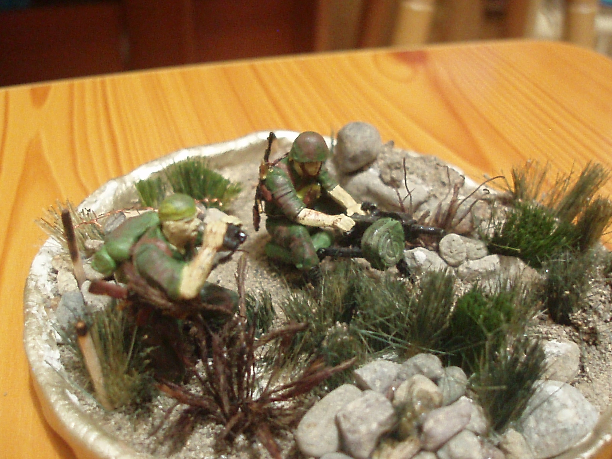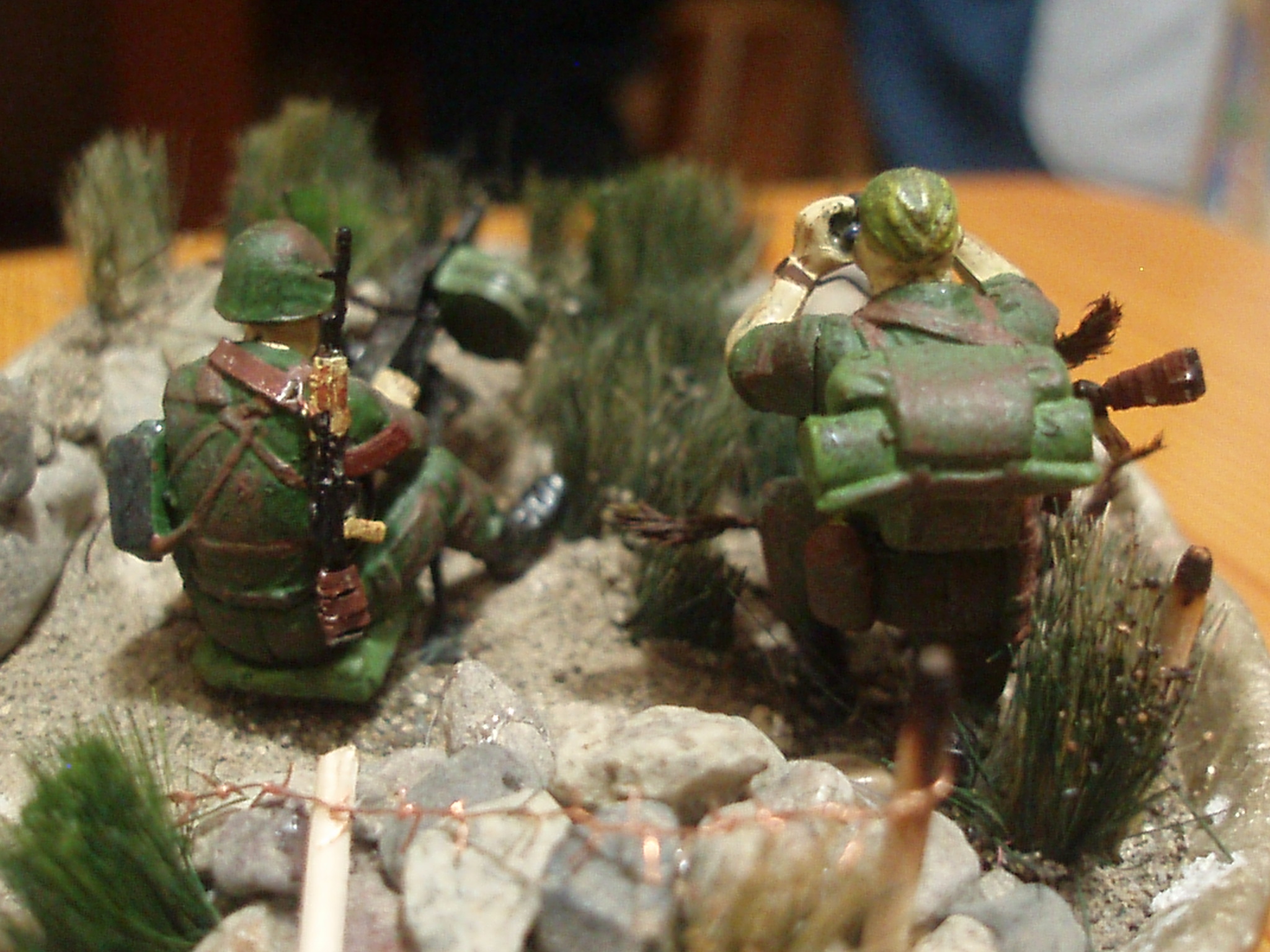 Всем привет! Хочу представить мою диораму "Диверсанты". Фигурки от "Звезды" "Российский спецназ - 2". Земля - песок на ПВА, трава - молярная кисть,кусты - растение какое-то сам не знаю