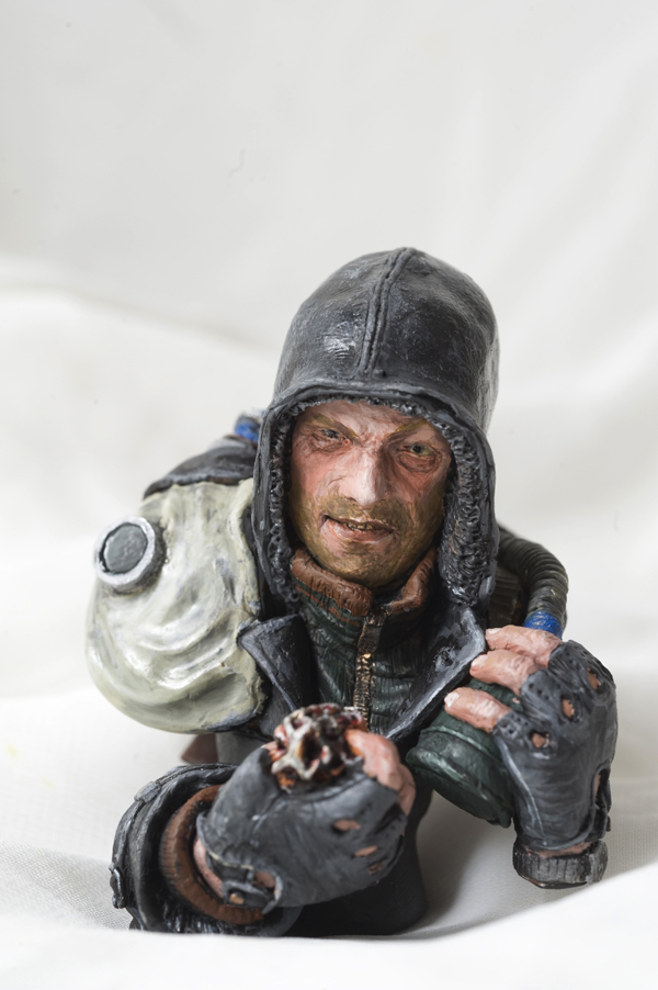 Здравствуйте! представляю Вам на обсуждение свою новую работу- бюст сталкера 1:10 из пластики "Сонет" раскрашенный акриловыми красками.