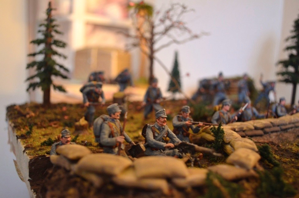 Масштаб 1.35. В основе использовались фигуры фирмы MasterClub и Zebranо. Диарама посвящается боям в Карпатах.