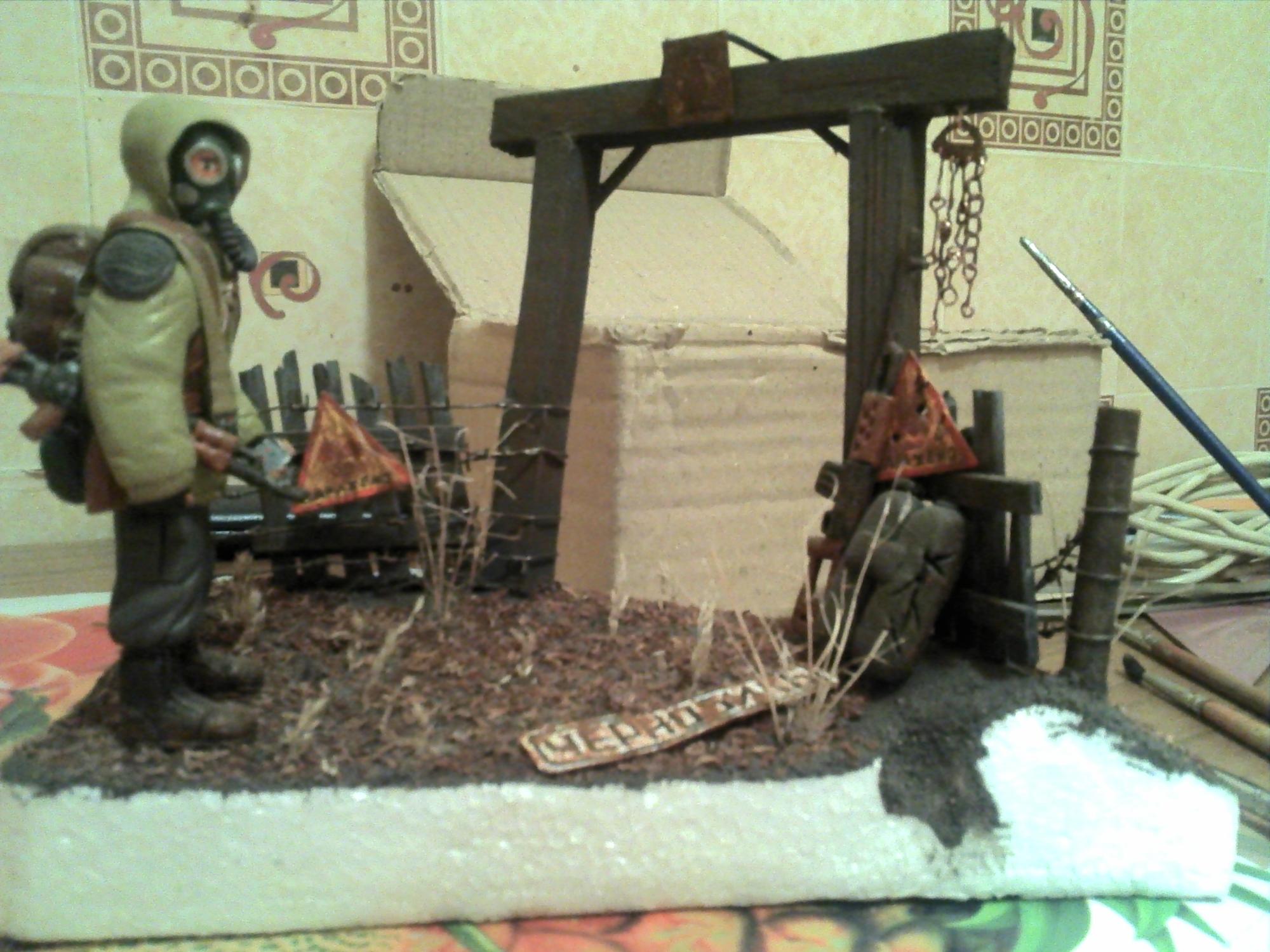что ж,похоже, что я напишу комментарий первый. так как я тоже обощаю игру сталкер прочитал 20 книг, не говоря уже о аудиокнигах. в общем работа довольно понравилась. ландшафт тоже. но доработки тоже можно сделать, тогда, разумеется будет лучше. персонаж, если вы лепил его полностью, а не переделкой солдатиков, как я делал свою работу "сталкер дрой", то довольно очень хорошо. если хотите, то пишите мне в личку, поделюсь своими секретами из мира сталкер. доработайте немного немного тонировки лисировки, и все будет отлично. и еще потом обязательно сделайте подставку. и будет отлично. с уважением.
