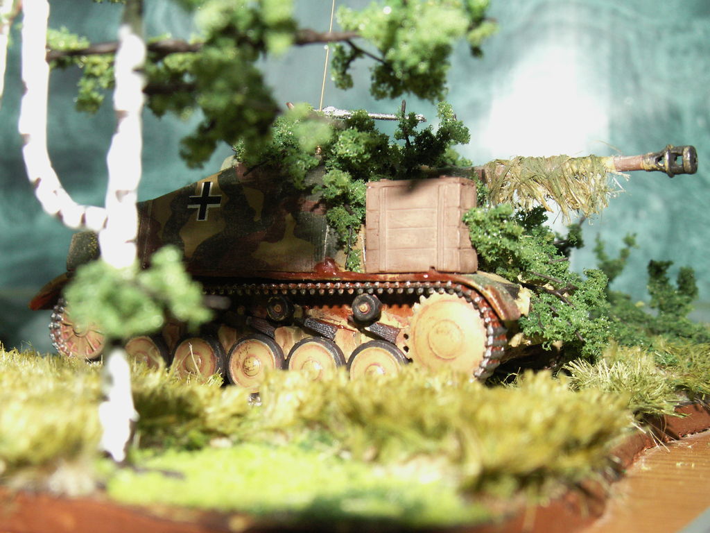 С растительностью работаю (хочу добавить лесной подстилки). Эксперементирую с материалами. В 72-м масштабе сложновато.