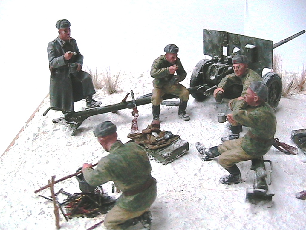 Александр, мне очень понравилось. Одно НО - судя по наличию гильз пушка стреляла, а следов отката орудия на снегу нет. Я полагаю, что ещё не поздно у станин сделать небольшие углубления и кучки из снега и грунта.