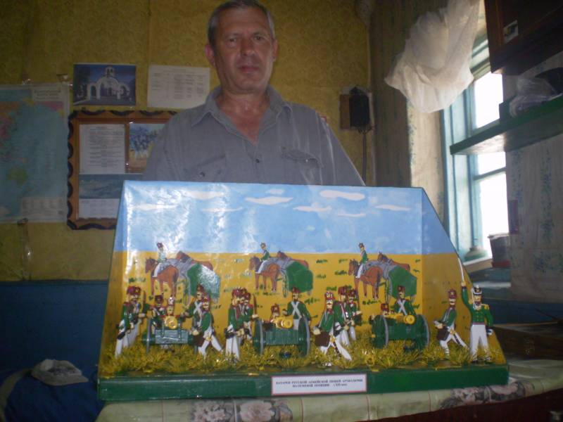 Вот и свершиласть мечта ,,идиота".Сделал наконец то диараму. На всё ушло 3 месяца. Размеры джиарамы 70 см на 40 см.Высота фигурок 13 см. Состав: 3 орудия, 18 артилеристов, 1 офицер(поручик) Материал: фанера, бумага, нитки. Вот и всё.