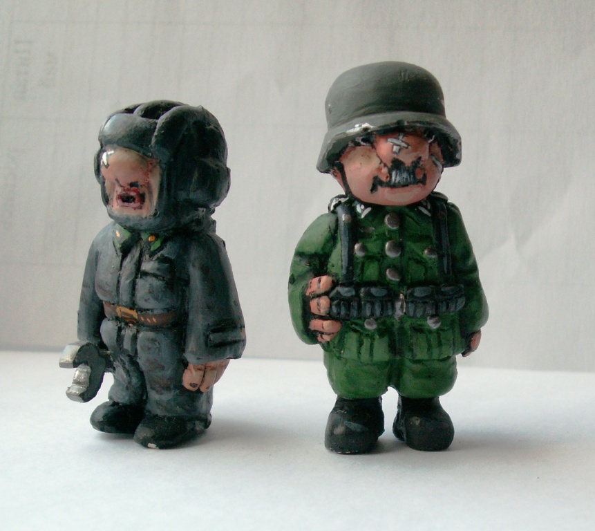 В дополнение к выше выложенному добавляю немного смешных мини солдатиков масштаба так 50...Были некогда вылеплены из пластилина и кое как переделаны в эпоксидных(поэтому и качество хромает)но идейка была неплохая...
