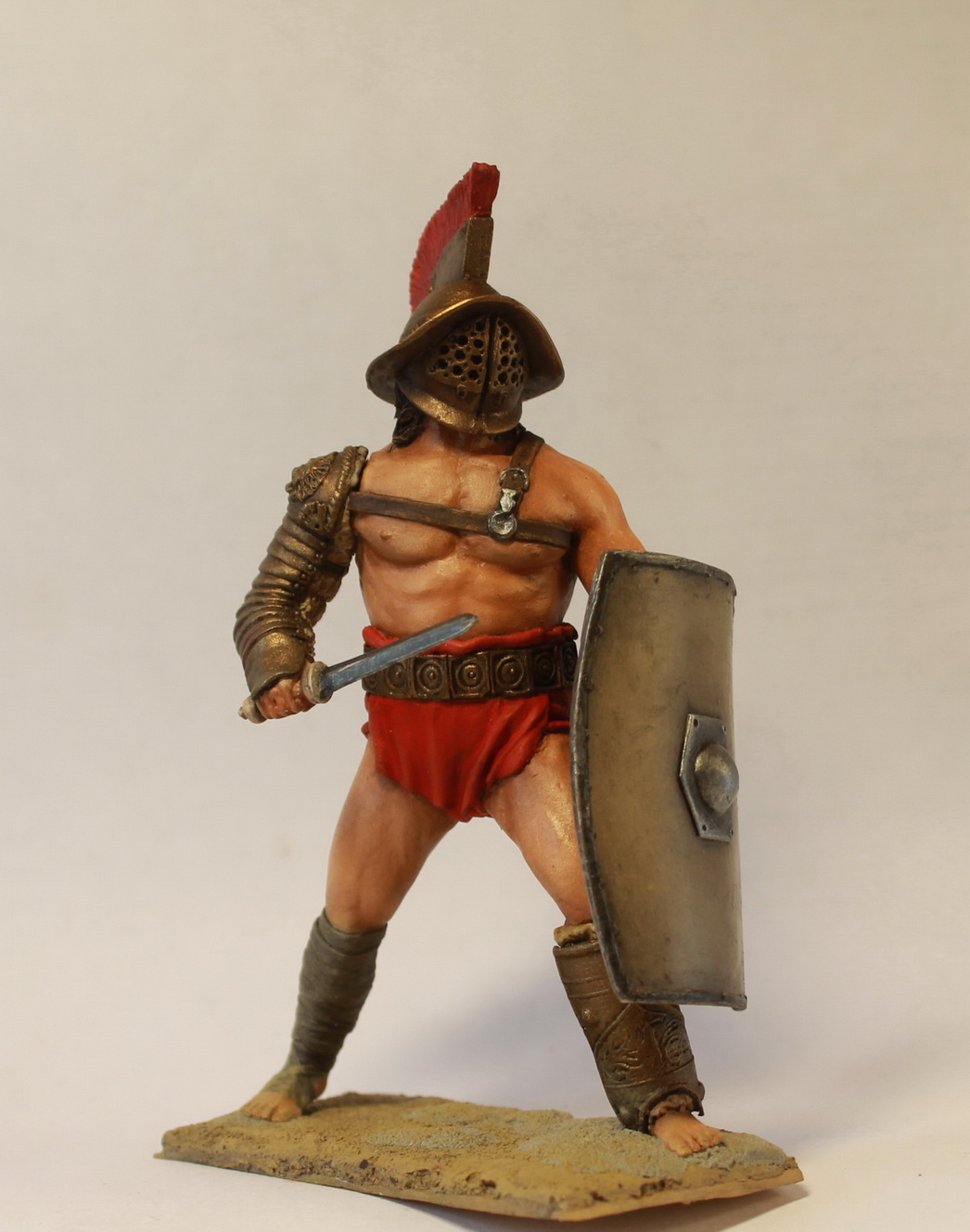 Хорош,шлем,наплечник,вообще отлично,да и сам он вполне правдиво сложен,где то читал что гладиаторов сажали на высоко калорийную диету,примерно были похожи на боксёров супер тяжей или если не добирали мыжцой то жиром закрывали,представляя собой достаточно рыхлых и массивных субъектов,делалась это якобы для того что бы растянуть бой по времени и обезопасить гладиаторов от тяжёлых ран той же жировой прослойкой.
