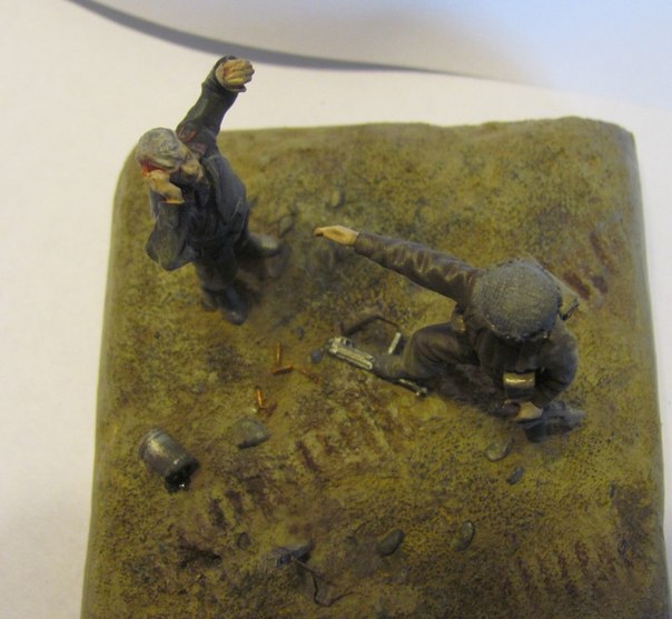 Насчет пустого места, думал об этом, показалось так будет атмосфернее, вроде как больше внимания уделяется самой ситуации, что ли. Не хотелось перегружать всякими касками, собачками и прочими моделистскими фенечками)) Эксперементирую, вот.
