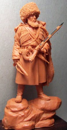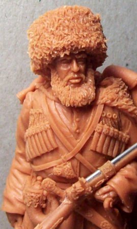 Разговор шел об изменении черкески.Что касается обуви-где здесь армейские сапоги?По папахе могу сказать следующее-утверждать,что изменения произошли в сторону увеличения мехового околыша несколько неточно.Скорее всего имело место одновременное использование разных типов папах,что потверждается фото.Если уж в армейских подразделениях шел такой разброс-что говорить о всех других. На рисунке Ежова справа виден товарищ с пуговицами на бешмете.Кроме того на персонажах можно наблюдать все виды папах.Вы не забыли,что фигура 54мм?