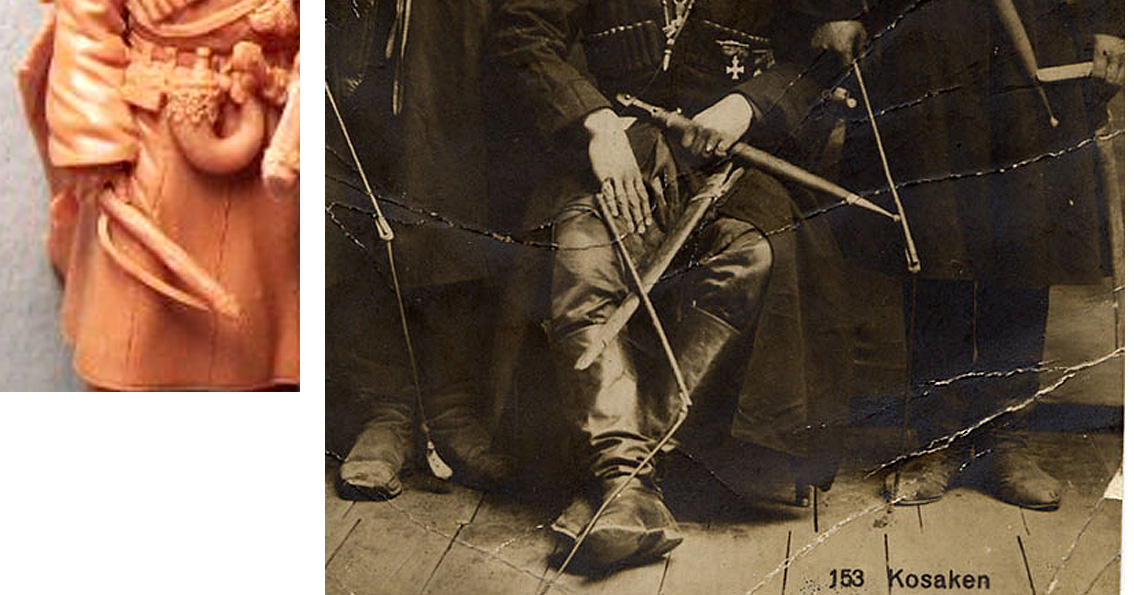 - На фигурке газыри (по своей форме, размерам и месту расположения) не имеют ничего общего с тем, что изображено на картинках, которые Вы же сами сейчас привели. Зато они полностью повторяют то, что я показал Вам в предыдущем посте. Тогда зачем их показали?