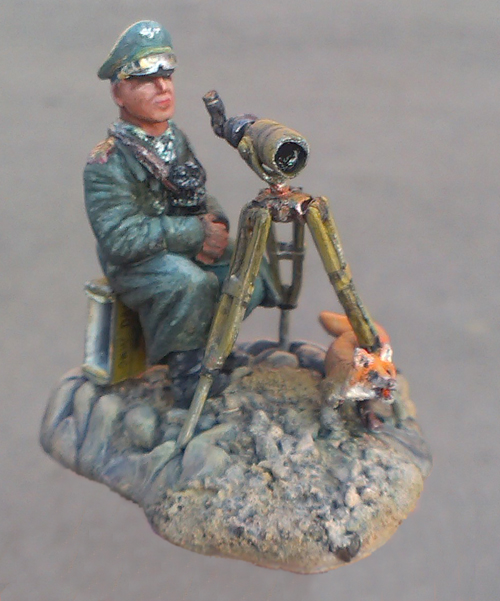 Первая самостоятельная работа в 35-м масштабе. Материал - Cernit, краски - темпера и акрил "Невская палитра", при создании подставки добавил речного песка и гальки.