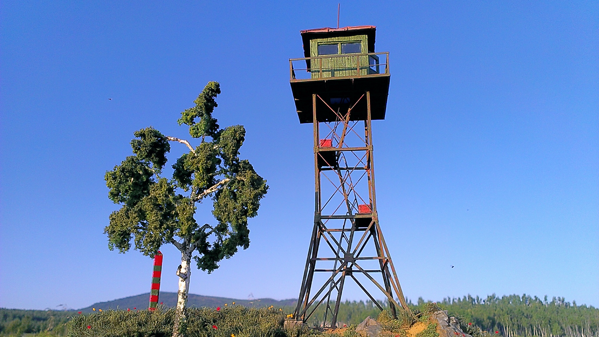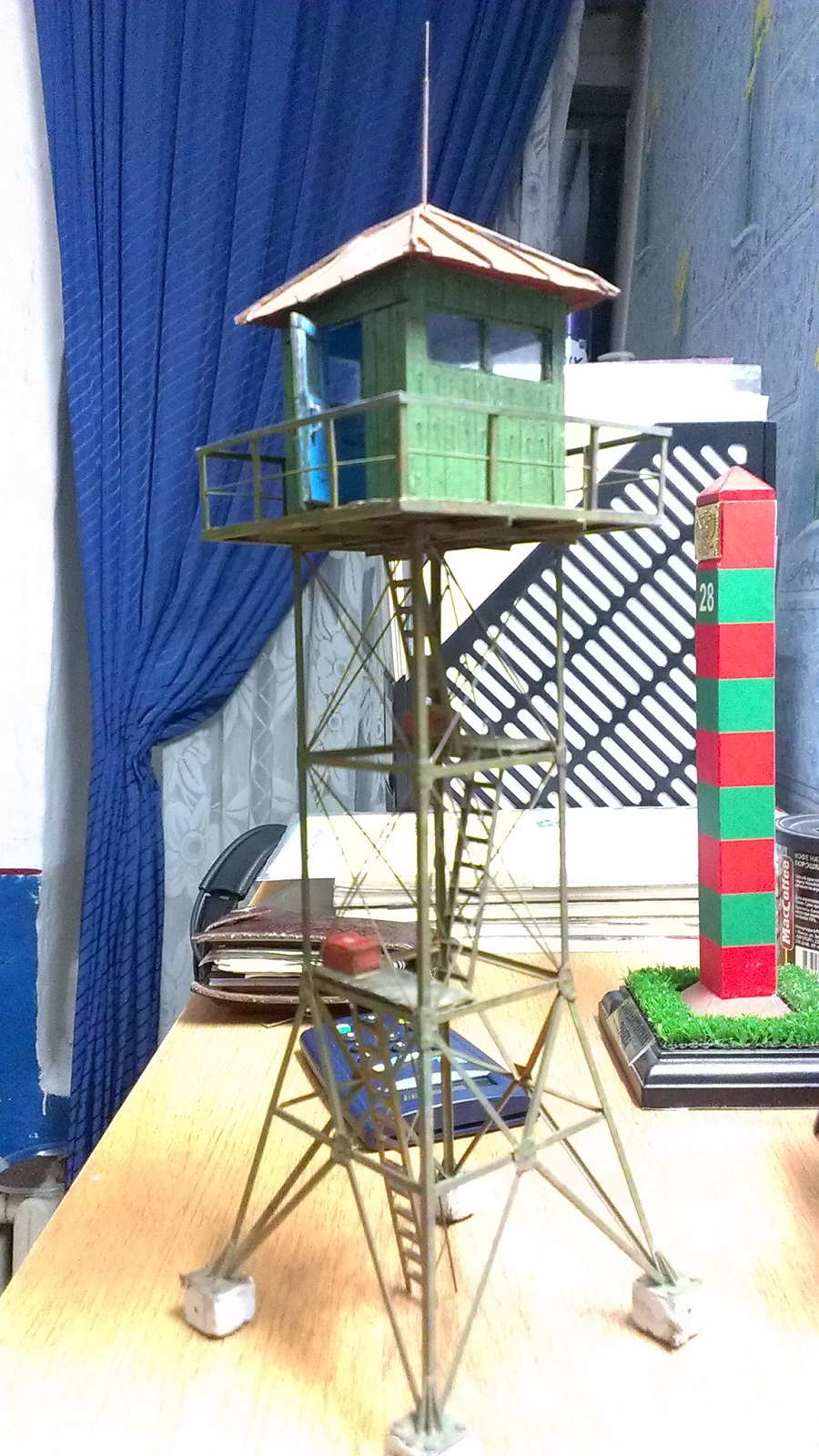 Это первая моя работа. Ни разу не видел диарам и виньеток на пограничную тему. Давно хотел сделать что то подобное и вот решился. По фотографиям соорудил вышку в два яруса из пластиковых уголков Эвергрин, будка из реек. Крышу хотел сделать из пластика, но передумал и сделал из тюбика от детского крема. Красил акрилом от Звезды, эмалью Хамброл, испльзовал Мастер-пигмент ржавчину. Масштаб 1:48, хотел в 35ом, но получилась бы большая. Сейчас пытаюсь сделать диараму, вышка стоит на берегу реки, пограничный знак, позади березка. Проблемма встала в окрашивании скального обрыва (ох уж эти скалы!). Ни как не могу определить цвета и оттенки! И фото с командировок смотрел и на Шилку ходил смотреть на скалы, а понимание не пришло (((. Вообщем вся работа встала. Еще хочу поставить на вышку ТПБ и часового, но где взять фигурку в таком масштабе и еще чтобы пограничник не стоял как на картинке, а так как несли и несут (и я в том числе) службу пока никто не видит )). Жду комментов и конструктивной критики. И еще добавляю фото березки.