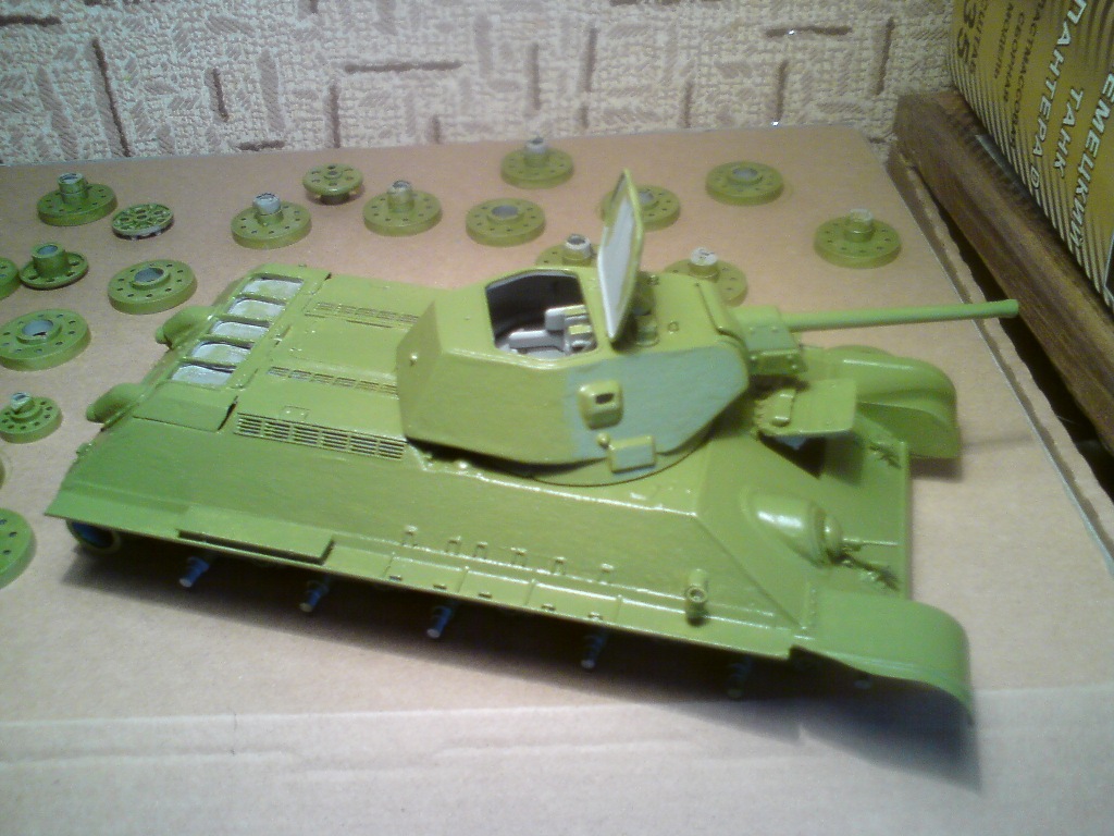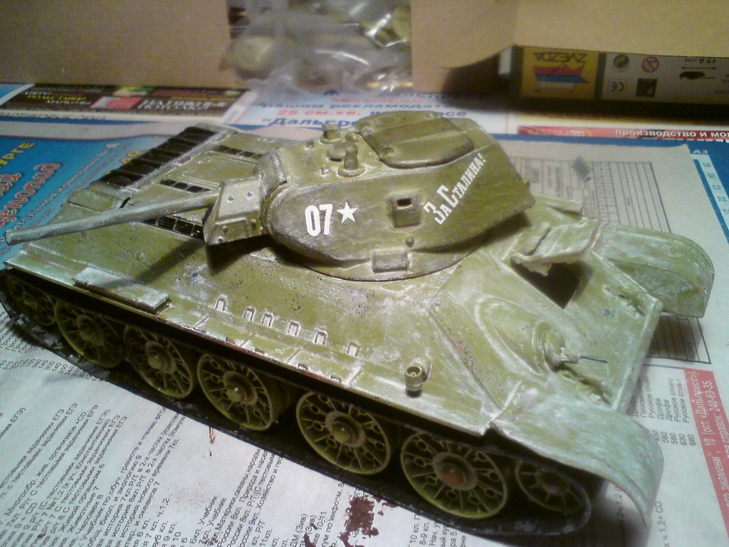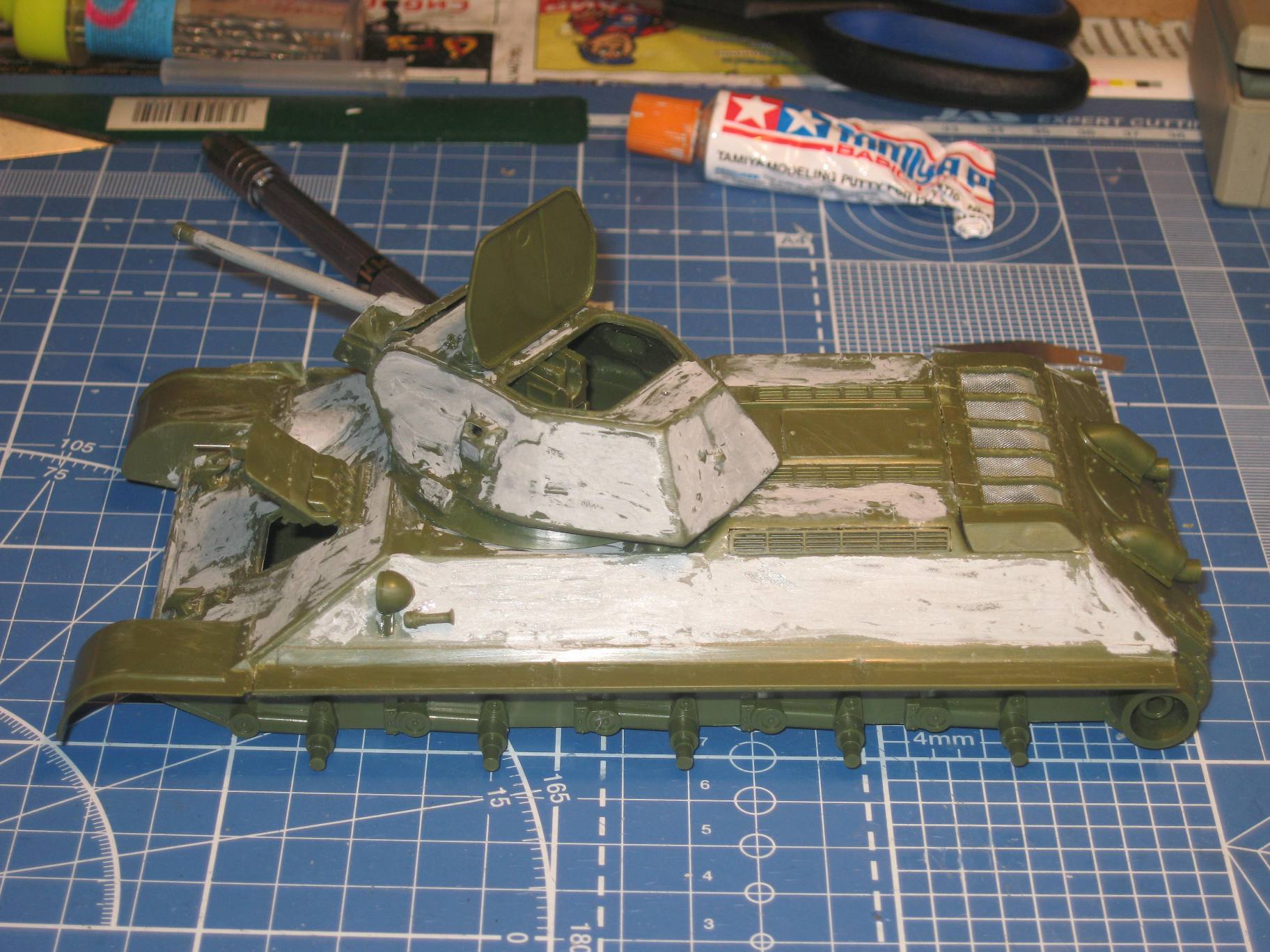 На прототипе (фотографии) видно на корпусе следы зимнего камуфляжа - побелки. Нанёс сверху зимний камуфляж белой художественной краской.