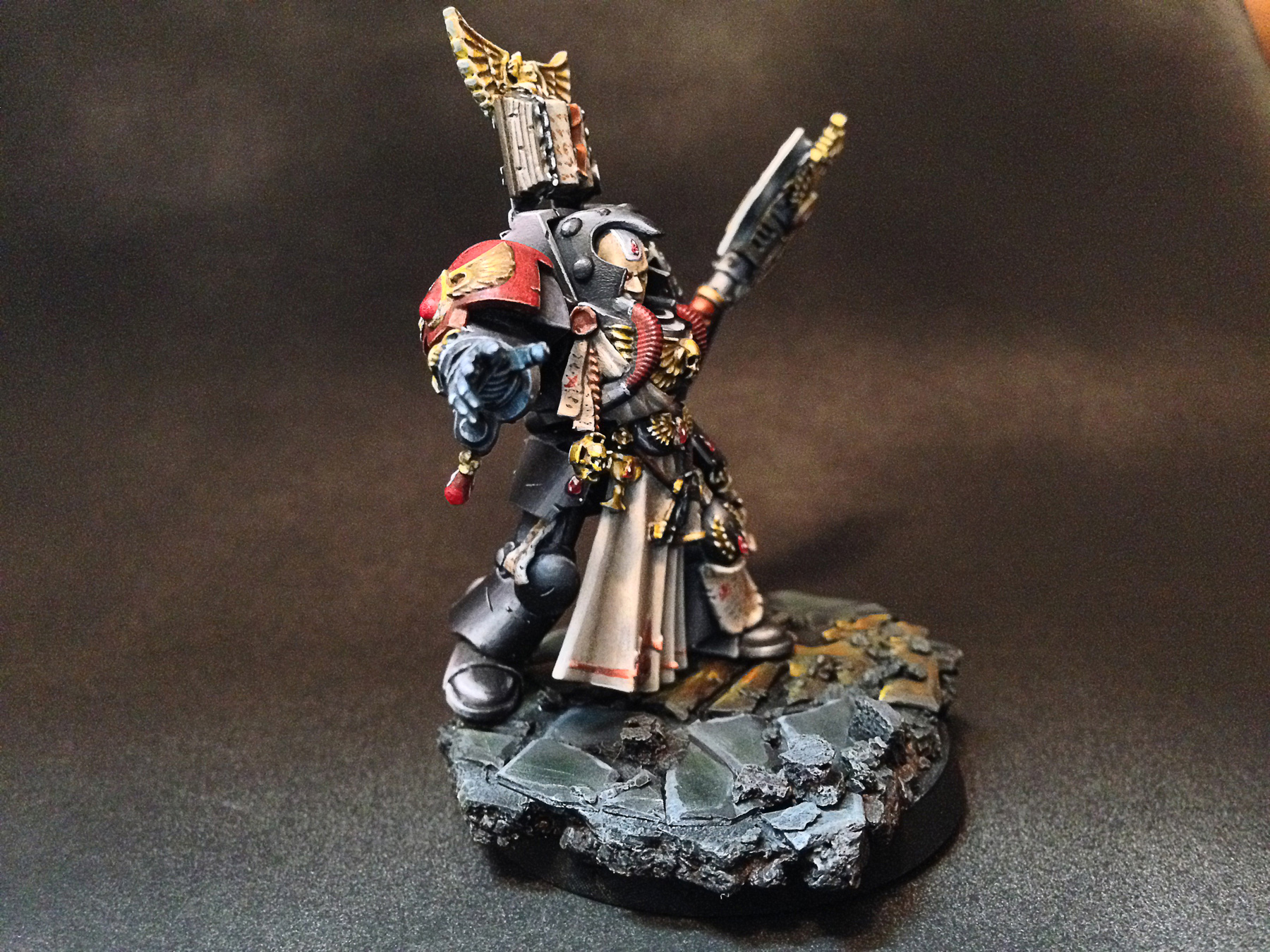 И так, миниатюра от производителя Gameswork Shop, по вселенной warhammer 40k, размером 28 мм, капеллан в терминаторской броне, материал смола, краски Vallejo game color, подставка - ничего нового.