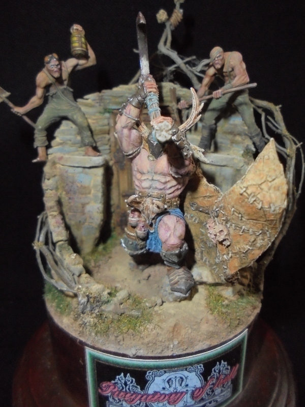 Основание стены лепилось из модельной пасты"Jovi".Сучья деревьев изготовил из запасенных заранее корешков кустов(предварительно высушенные).В миниатюре использованы фигуры от фирм"Merce miniatures"40мм и "Wyrd"28мм из игрового мира"Malifaux".Дверь взял от старого набора"Крепость" фирмы "Технолог".В росписи были задействованы краски Валеджио,Р-3,АК,весь арсенал химии нашего испанского друга Мигеля.Паутинка на черепах настоящая,нашел в углу комнаты.Во время орошения песочка"красненьким" рука с аэрографом дрогнула,в результате переборщил с хардкором и забрызгал все вокруг.Ну,будем считать,что грешники получили по заслугам.
