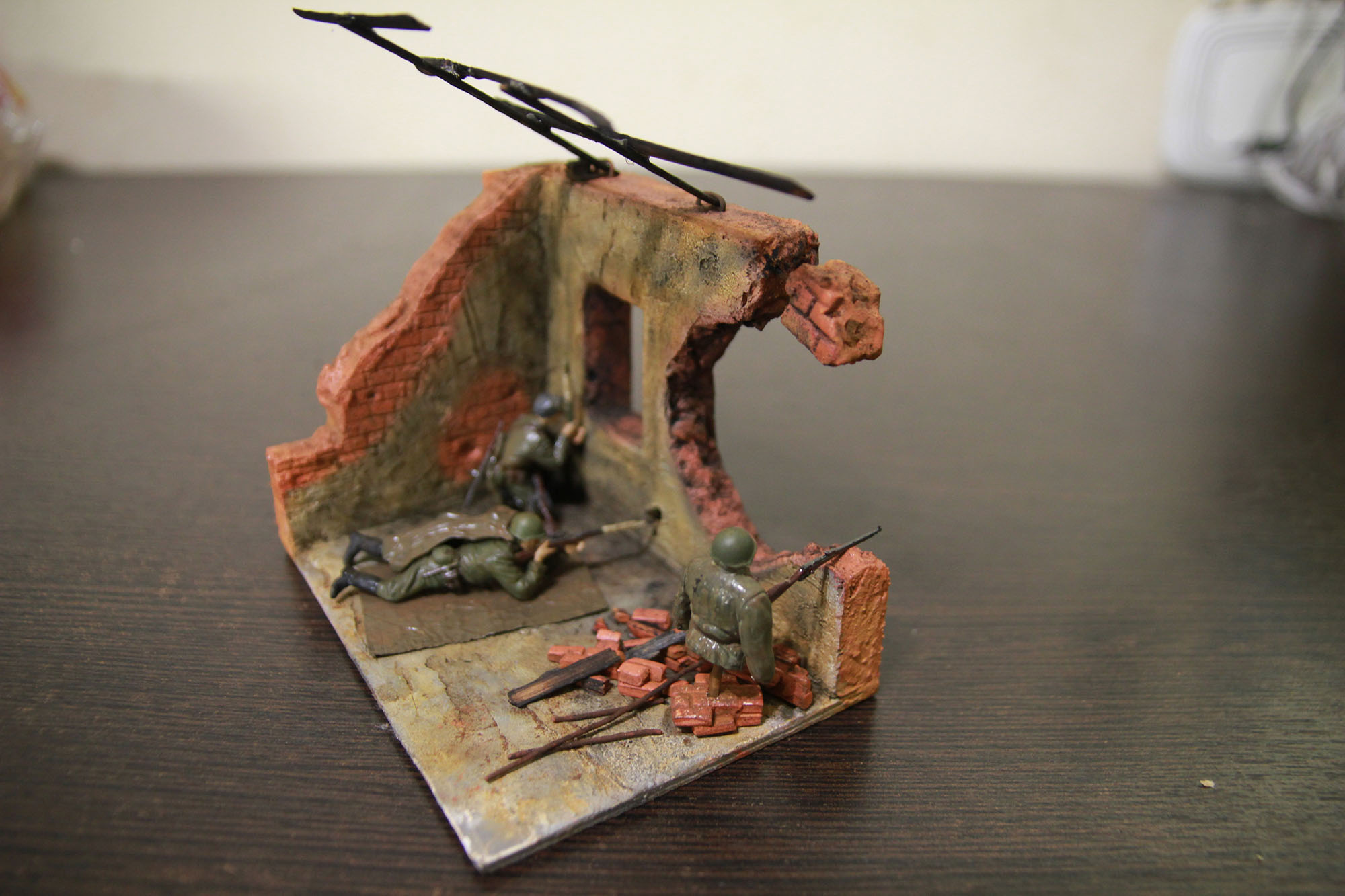 Все кроме арматуры, брезента и фигурок с оружием я решил приклеить к полу