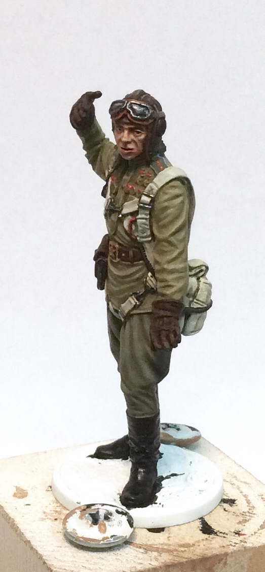 Почему не знаю, но именно с этой строкой из песни у меня ассоциируется эта фигура От ЕК Кастингс, скульптор Юрий Пятков. Олово 54 мм. Акрил, темпера ПВА. Работаю сразу с двумя летчиками. Фигуры в процессе