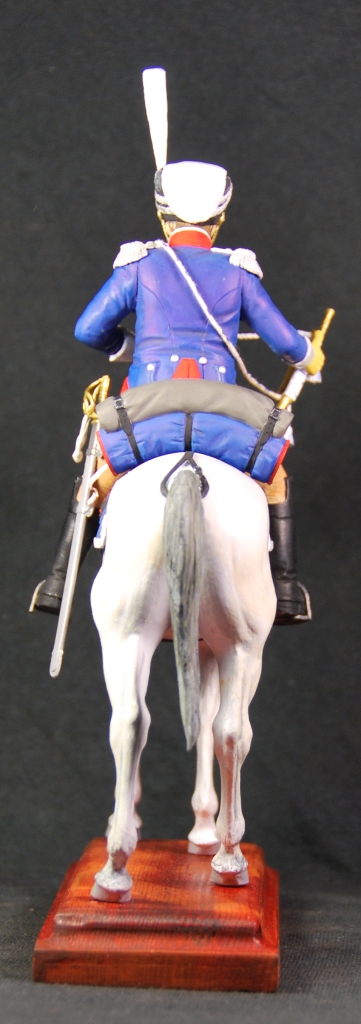 Чингис, Несколько замечаний по униформе...Этишкет белый,кокарду зря серебрянной сделали.она национального цвета.Приборный цвет-не красный......Цвет мундира-тёмно-синий.Кюлоты так же другого цвета..Шпоры тоже желательно сделать металлическими..Обратите внимание на чемодан кавалериста на заявленный 1813г...