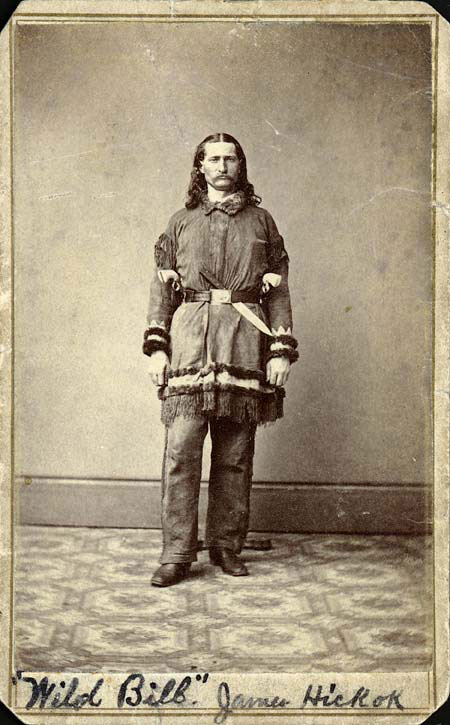 "Начавшаяся гражданская война была благословенным временем для Хикока. О службе его было придумано много удивительных и неправдоподобных историй: о том, как он прорвался сквозь толпу солдат-конфедератов, уложив почти всех, и при этом не получив ни единого ранения; о том, как он прополз в лагерь врага и добыл секретные сведения чрезвычайной важности; о том, как снайперскими выстрелами в течение нескольких часов он уложил из засады тридцать шесть вражеских солдат, а потом и самого генерала, чем внес в ряды противника неразбериху; о том, как он убил Победоносного Медведя, одного из вождей индейского племени сиу, заманив его в Канзас обещаниями большой награды за помощь Союзу."