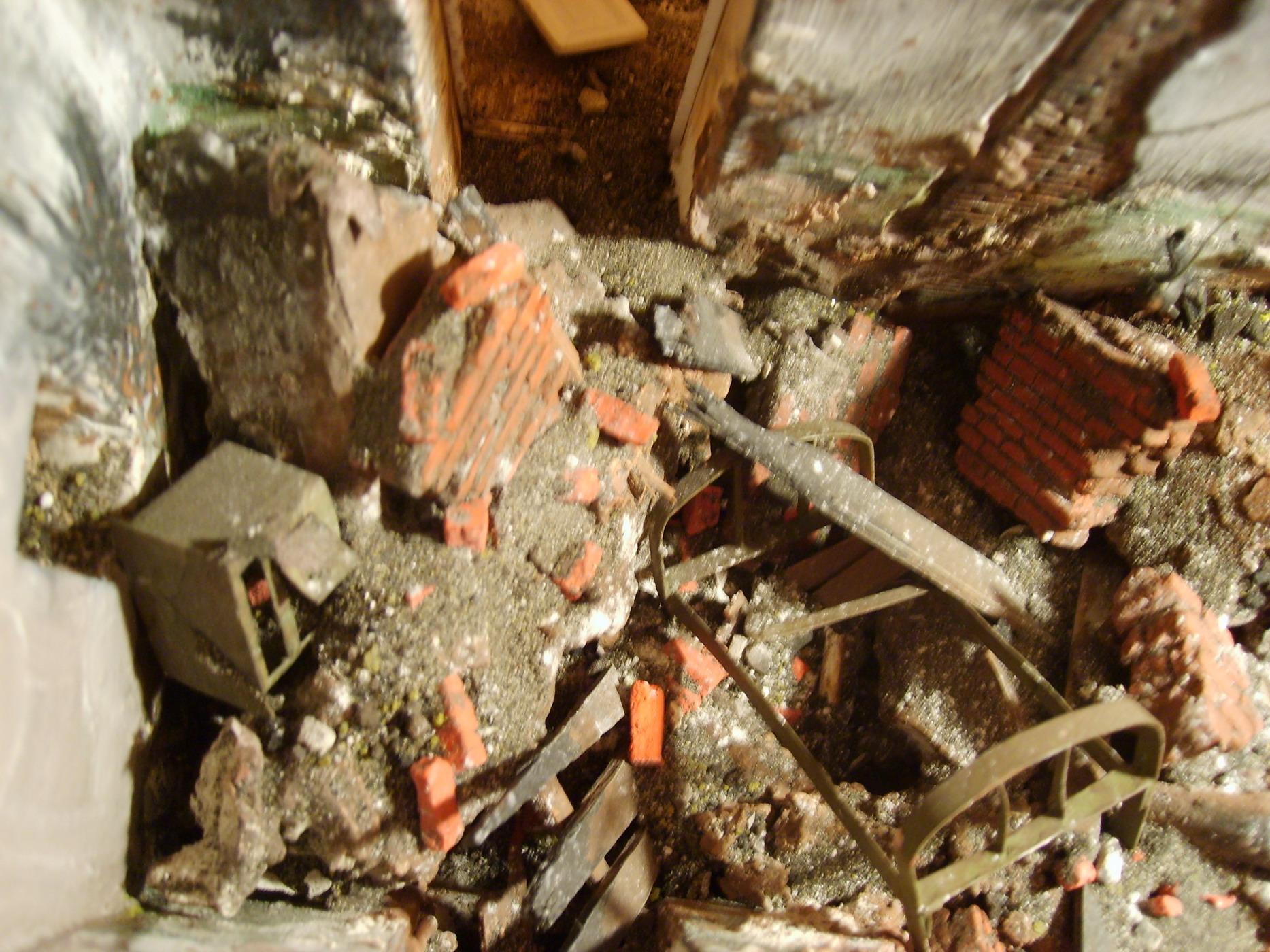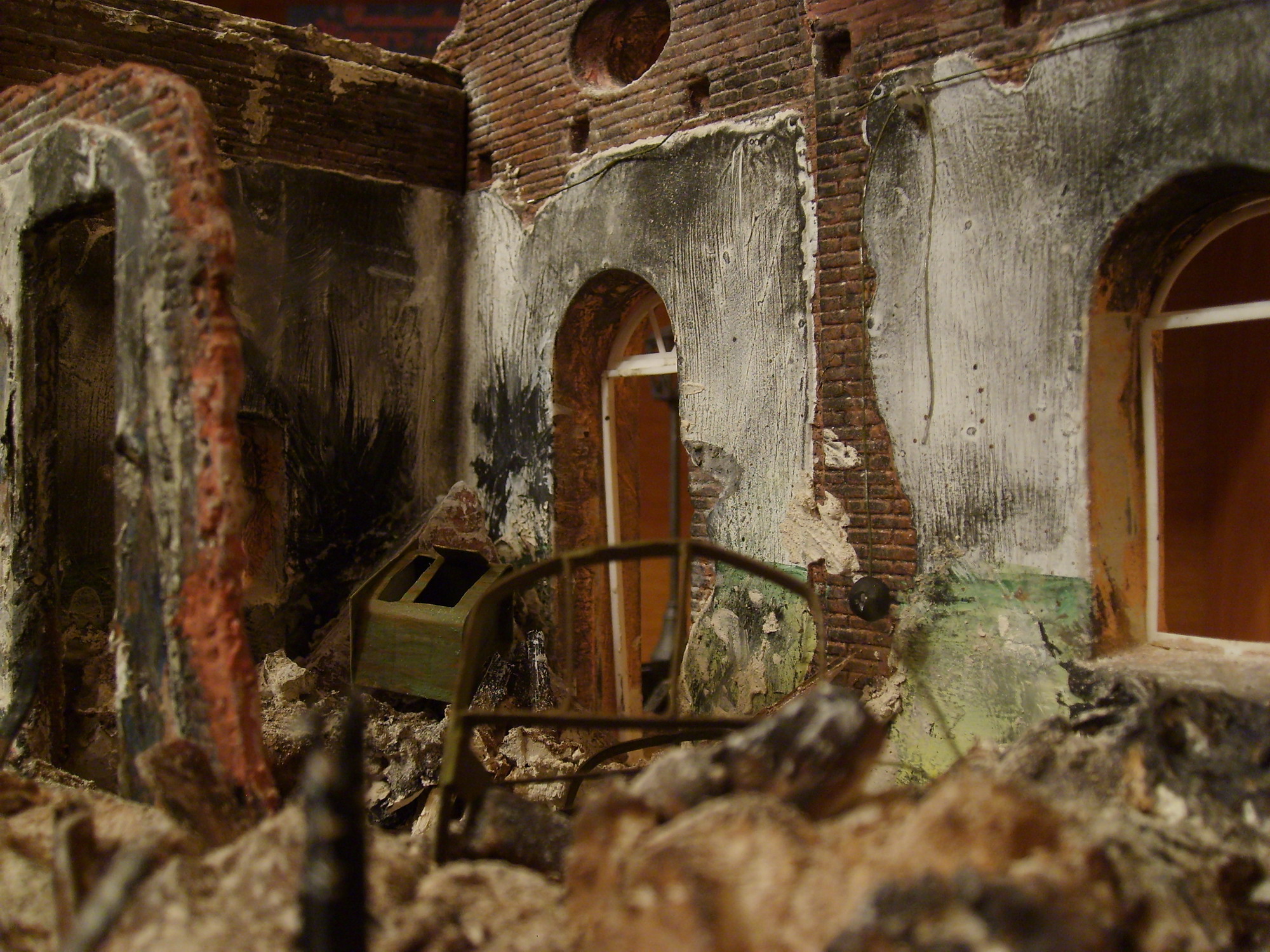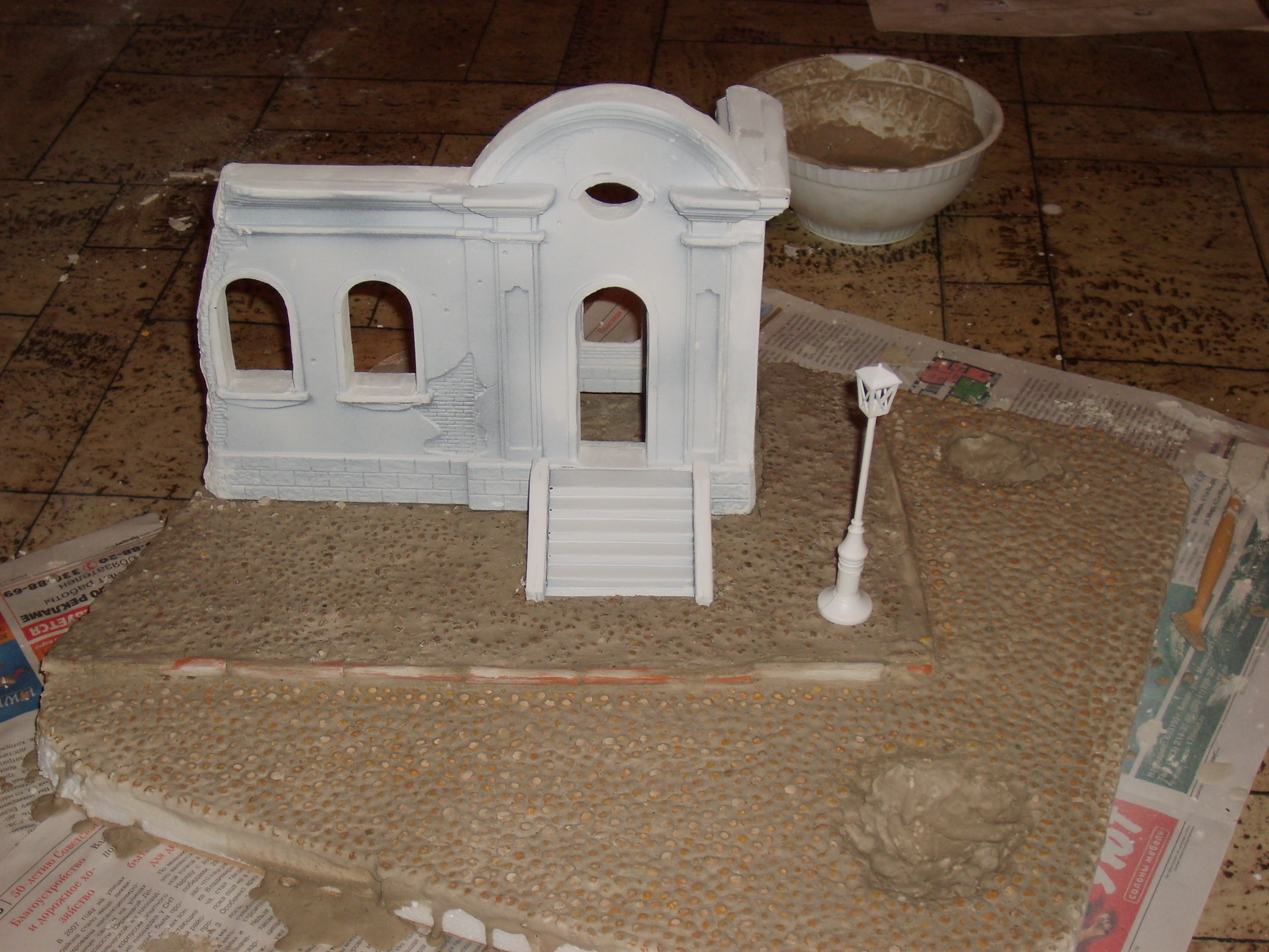 Решил выставить на обсуждение мою первую пробу по созданию диорамы. Руины здания от "МиниАрта", остальное самодельное. К сожалению перепобовав кучу вариантов, не смог придумать сюжет. Может кто чего подскажет?