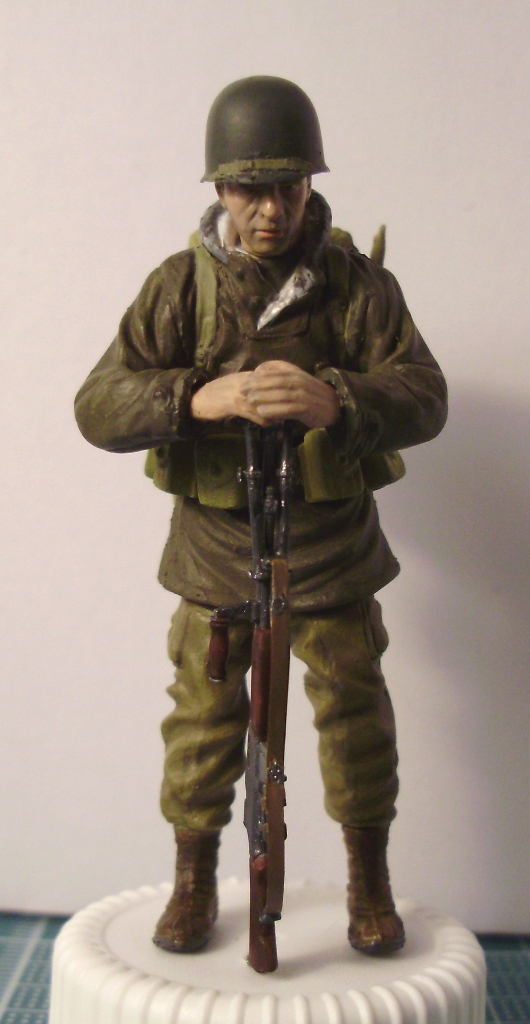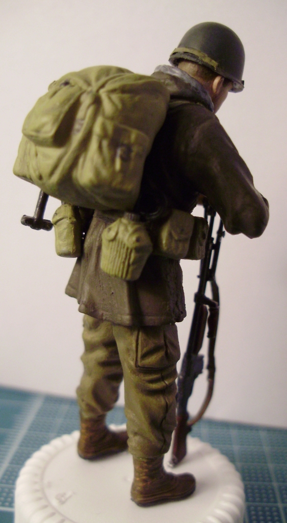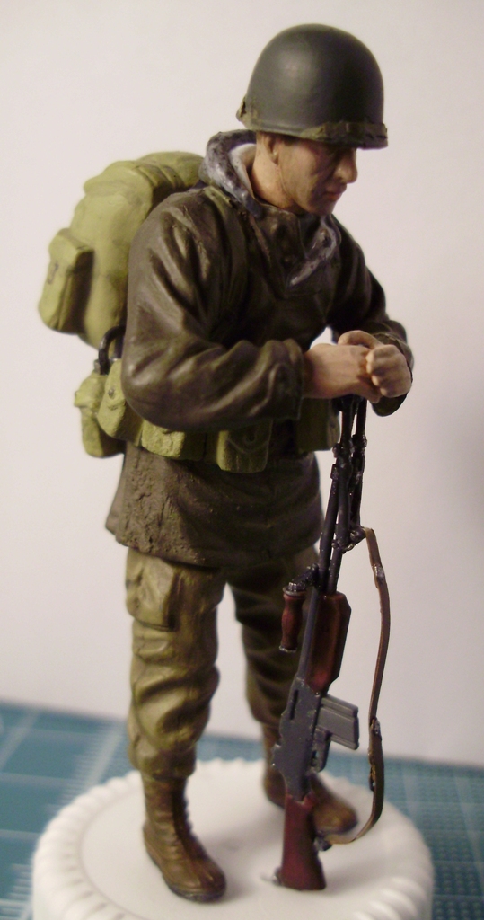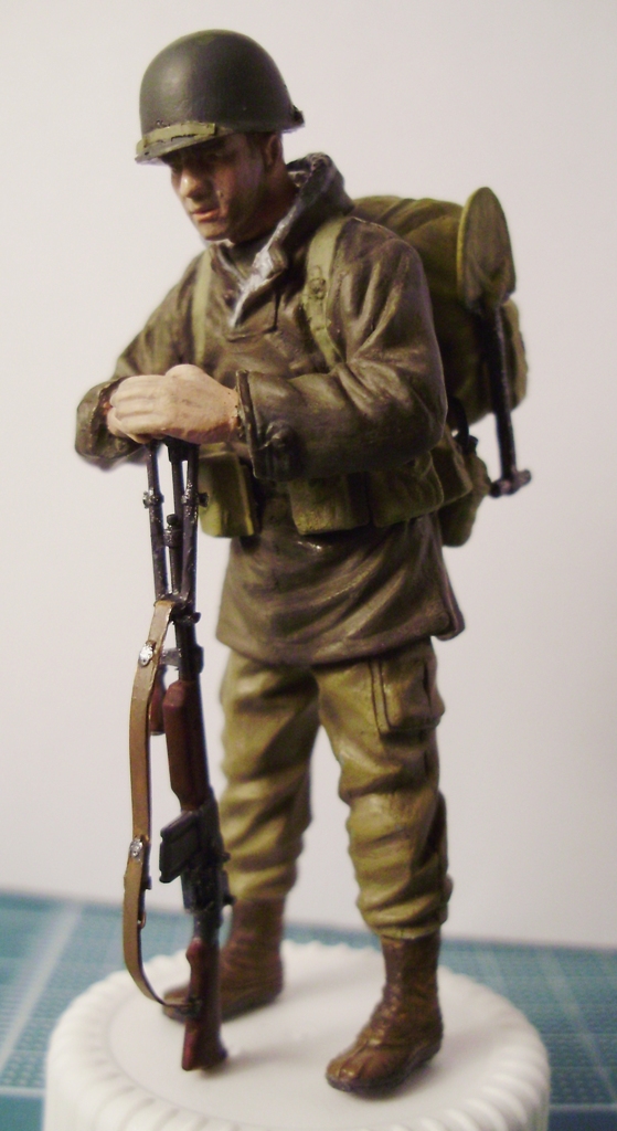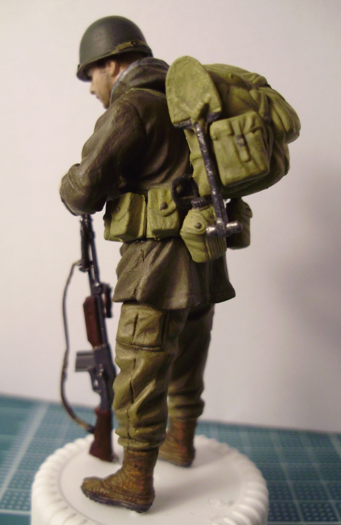 Хорошая фигурка. Лицо понравилось, руки нужно оттонировать, не спец по американцам, но гетры были брезентовыми, видны следы стыков пресс-формы на носках ботинок, форма смотрится несколько однотонной.