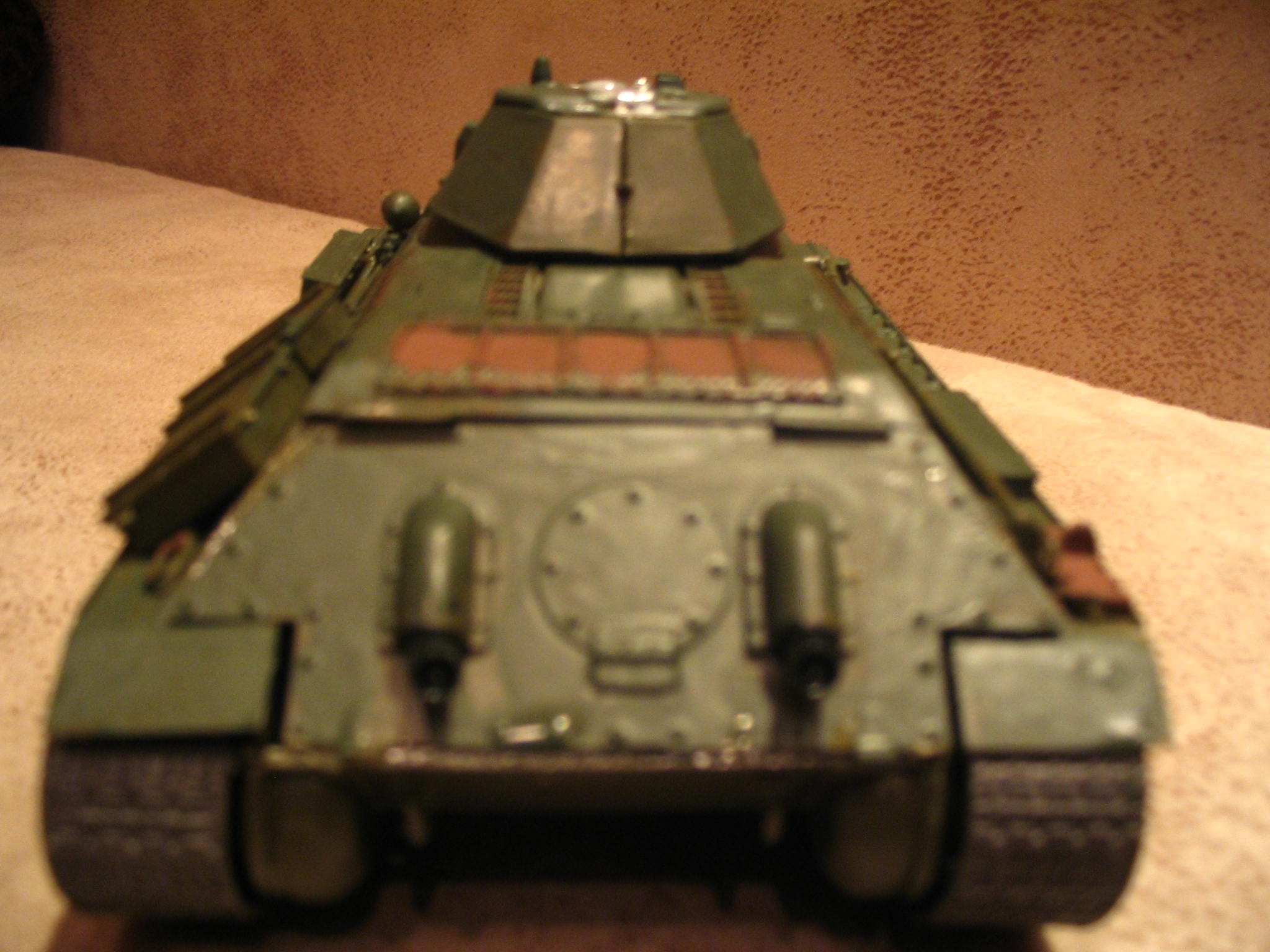 Фотографии крайне нерезкие, поэтому трудно что-то разглядеть. Но даже при такой резкости бросается в глаза стык половинок башни на виде сзади. Надо было хотя бы прижать их поплотнее при склеивании. Говорю "хотя бы", а по-серьёзному такие стыки надо тщательно зашппатлёвывать, чтобы ни малейшего следа не было видно - в жизни там был сплошной стальной лист.