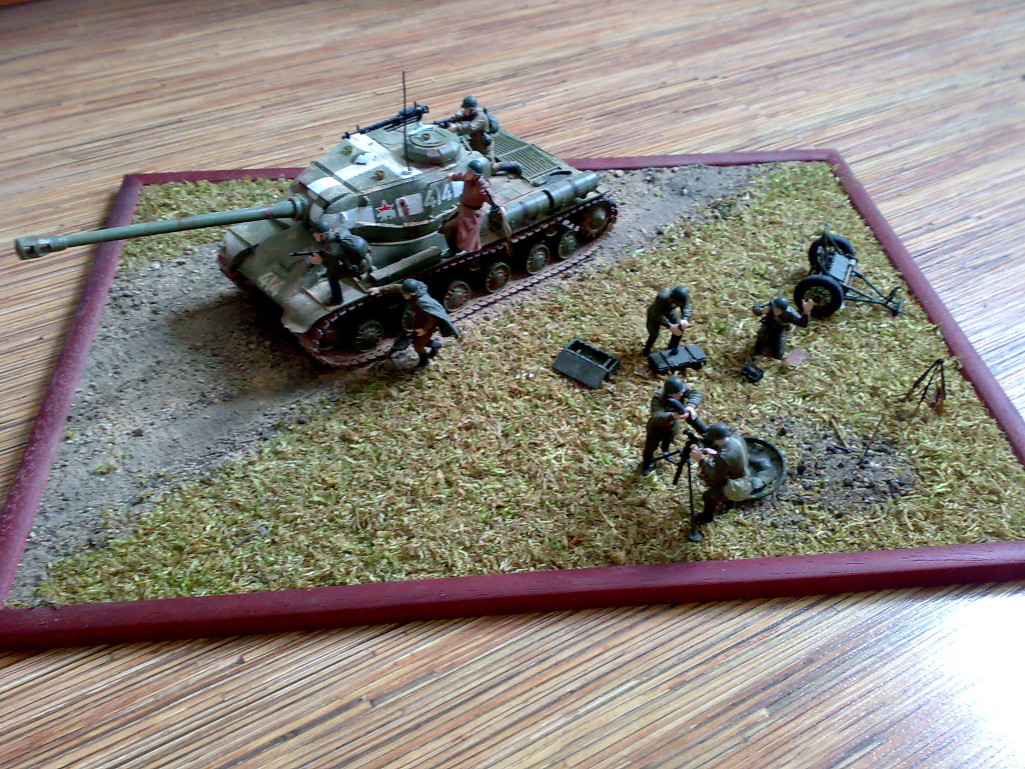 благодарю за советы. Чесно говоря идея была немного другая изначально - вместо минометчиков поставить какое нибудь дерево или там развалины ну вобщем что то типа этого. минометчиков потом перенесу на маленькую фоторамку, когда придумаю полное оконсчание этой. а сейчас сделал как бы для треннировки. и еще вопрос - под миномет реально яму небольшую вырывают или как его правильно ставить, в то ИС-2 я делал по фоткам из поисковика и с минометчиками так сказать пофантазировал