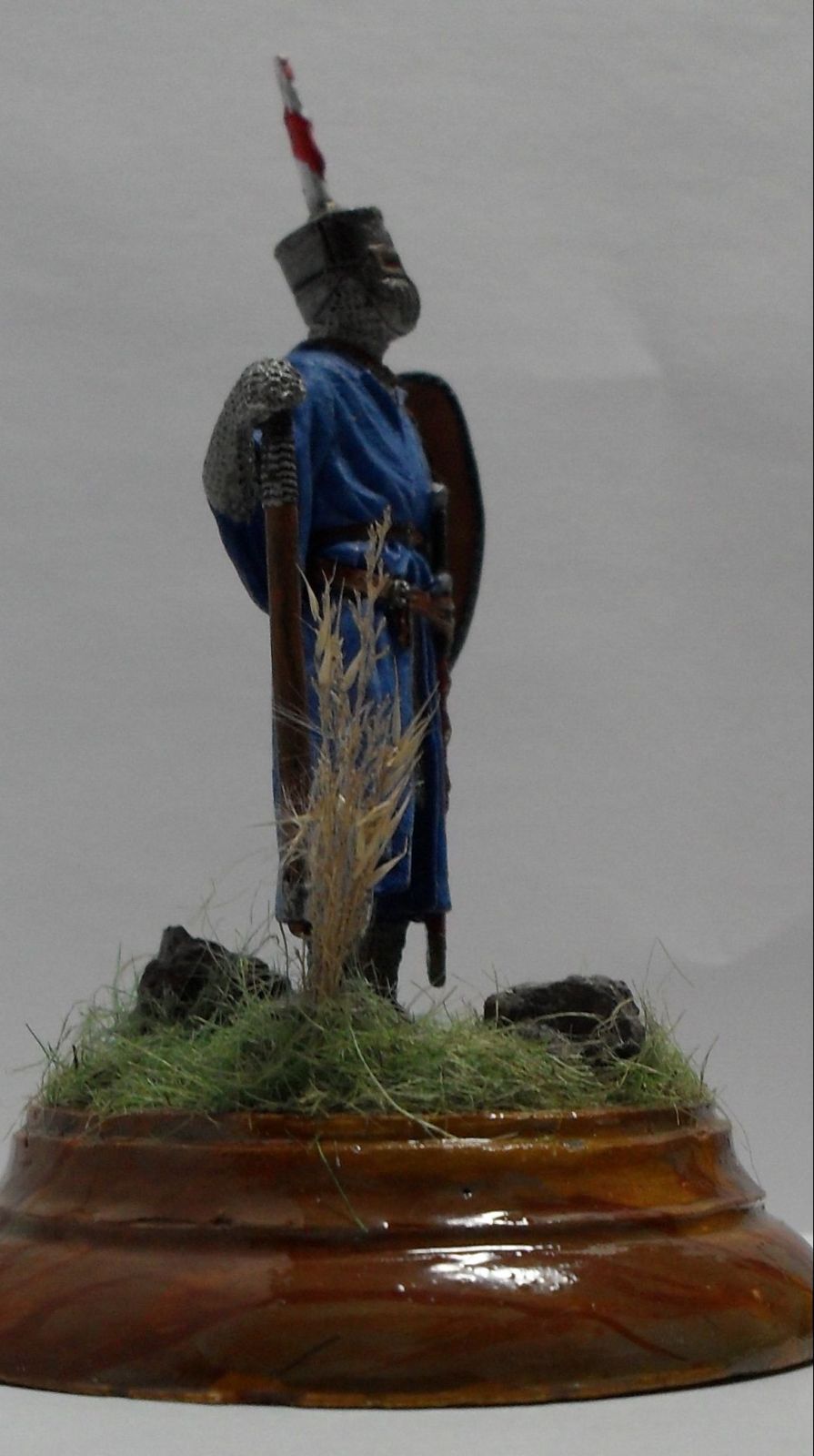 Фигурка -белый металл производитель E.K.Castings.Окрашена акриловыми красками фирмы "звезда".Трава из пакли ,куст из природного материала,камни-кирпич,подставка из гипса и окрашена тоже акрилом,а потом покрыта лаком.За достоверность одеяния не ручаюсь,но всё что нашёл применил в покраске.Это моя первая работа.Критиковать можно и нужно!