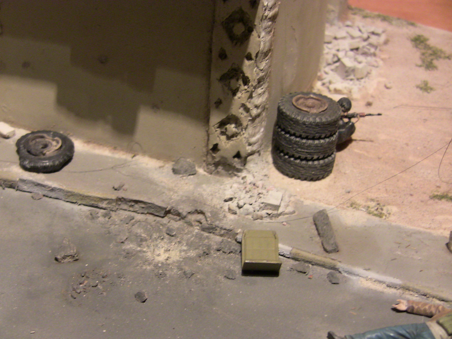 Тут же диорама в полном смысле слова (смотрим общее фото скажем сверху) -воссоздан кусок улицы города, бой. По диораме понятно место действия, время действия, сам конфликт плюс изображена динамическая сцена.