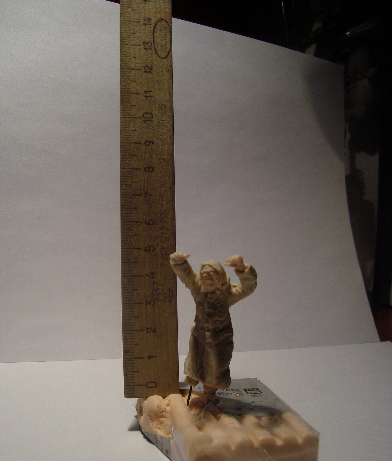 первый опыт в лепки фигурки :) лепил из пластики, еще не обжог нужно мне кажется руку переделать и кисть ( хотел сделать перебинтованную но что то срамно смотрится )