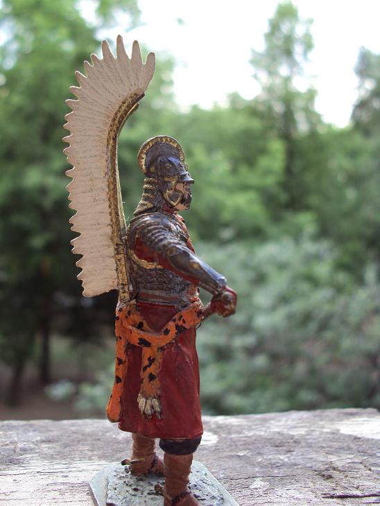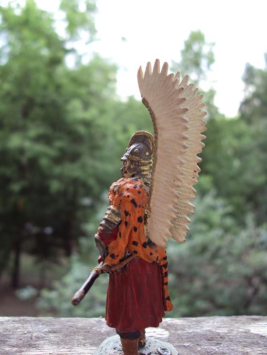 Gotic, пожалуйста посмотрите на других расписанных уже поляков в галереи. Перья ну никак не могут быть просто белыми, шкура барса не может быть просто оранжевой, там присутствуют и другие цвета и оттенки того же оранжевого(наберите в ГУГЛе слово "барс"), поработайте с глазами фигуры. а также с цветом лица. Красить старайтесь аккуратней не вылезая за пределы(просматривается на кирасе), старайтесь оттенять цвета.