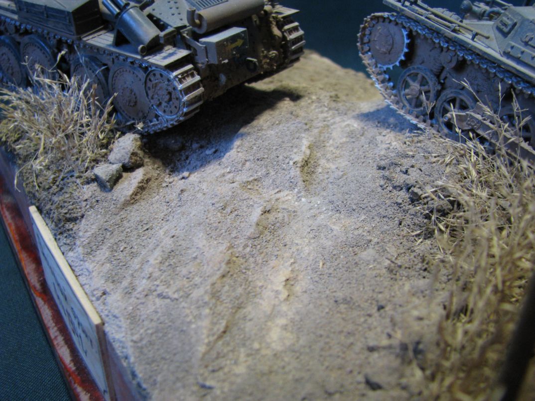 Это моя первая работа.Модели: MB и моделист,краски(моделист и акан).Основание из гипса.Так же в диораме я использовал природные материалы:мох,земля.Зафиксировал все ПВА+вода.