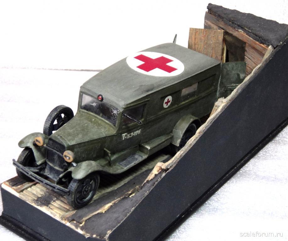 Исходная модель-ГАЗ-АА М: 1/43, пр-во Китай, " Наш автопром". Основание коробка от модели, откос,настил и вход в землянку- шампуры и шпон. Краски- художественный акрил, питерский кажется.