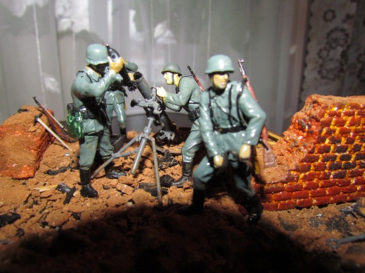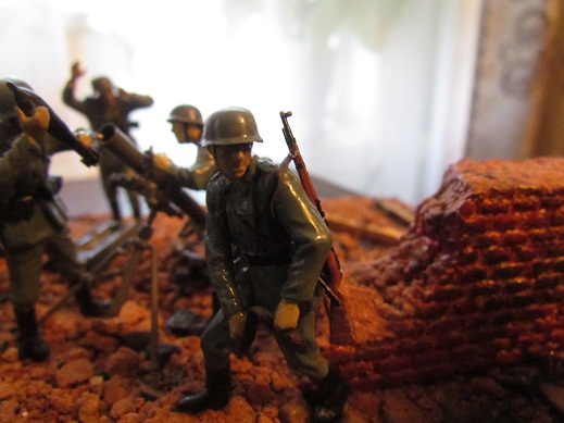 Бойцов запылить кирпичной пылью надо бы, она очень пачкается. Композиция понравилась. Успехов.