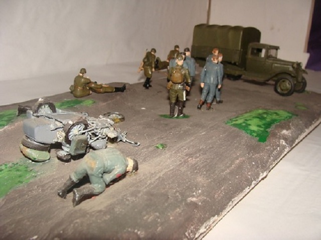 А мне понравилось - очень позитивная диорамка, хоть и не достоверная - особенно экипаж мотоцикла, своими касками роющие землю