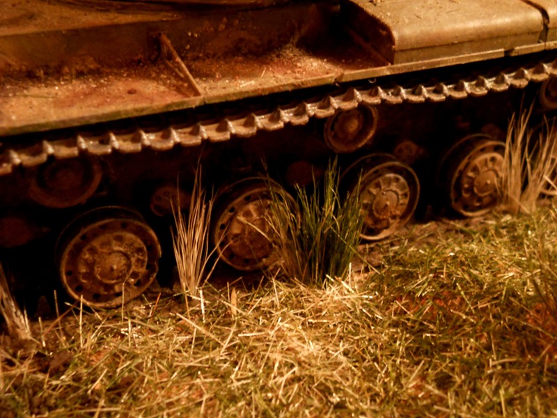 Первая работа, окрас кистью.танк-моделист,солдат-звезда,офицер-ICM,покраска акрил (звезда), тонирование маслом, постелью;трава-кисть, основание скульптурная глина, земля -пастель.