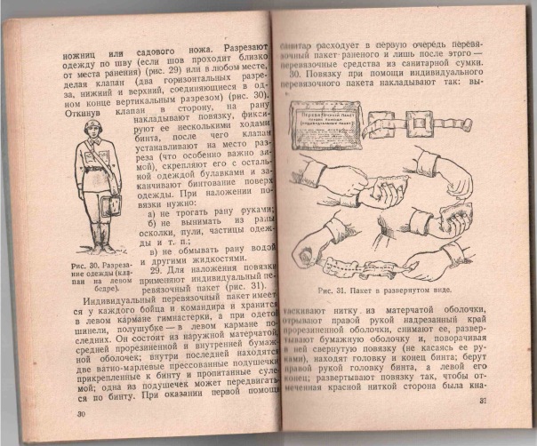 Grif, ну не совсем так, особенно во время боя. Одежду раненого разрезают по шву в месте ранения, и не как попало, а делая клапан; накладывают на рану повязку; получившийся клапан закрывают - и бинтуют уже ПОВЕРХ одежды, для фиксации. Впрочем, вот тут всё это описано, в "Руководстве для ротных санитаров и санитаров-носильщиков" 1941 года издания.