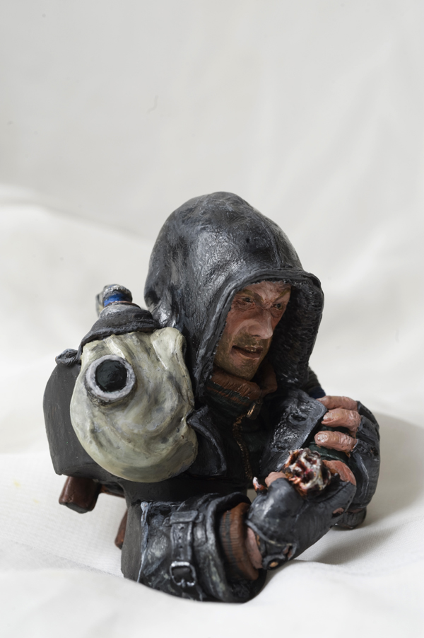 Здравствуйте! представляю Вам на обсуждение свою новую работу- бюст сталкера 1:10 из пластики "Сонет" раскрашенный акриловыми красками.