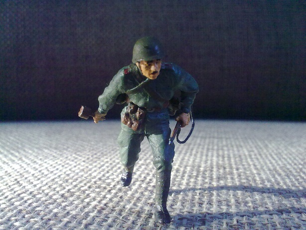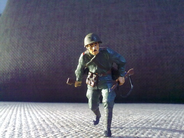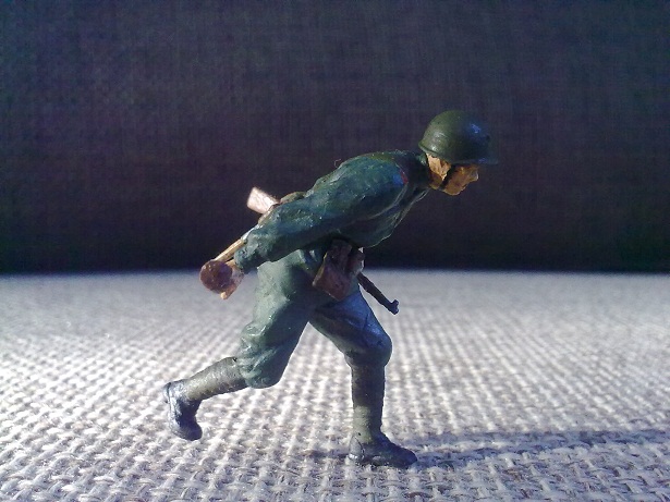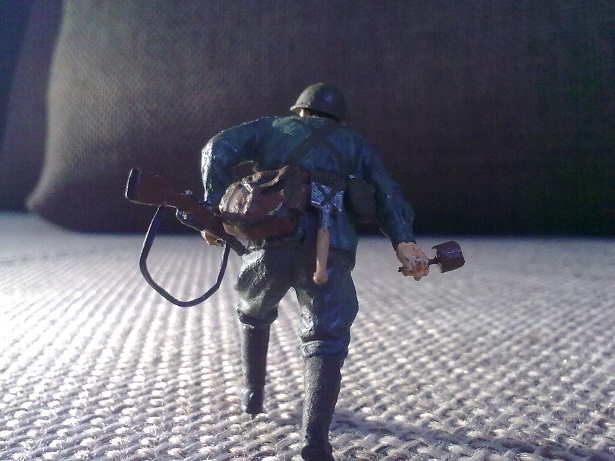 Кстати, насчет конверсий: если данному бойцу приделать руку от бойца из работы "Больно", может получиться неплохой вариант-раненый боец кидается с гранатой под танк!