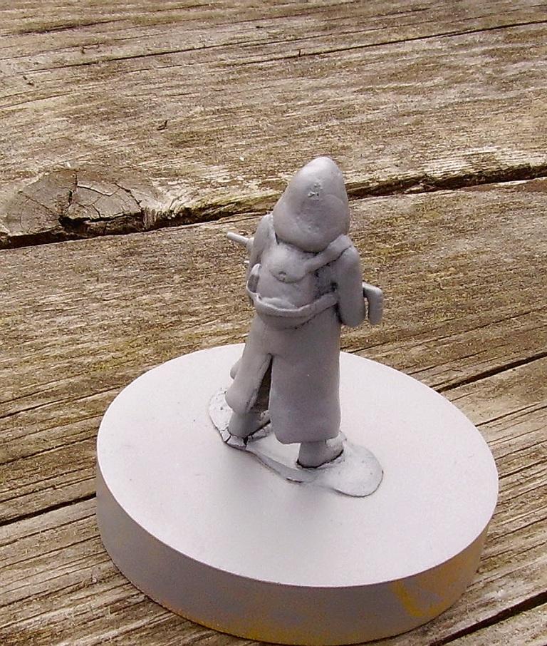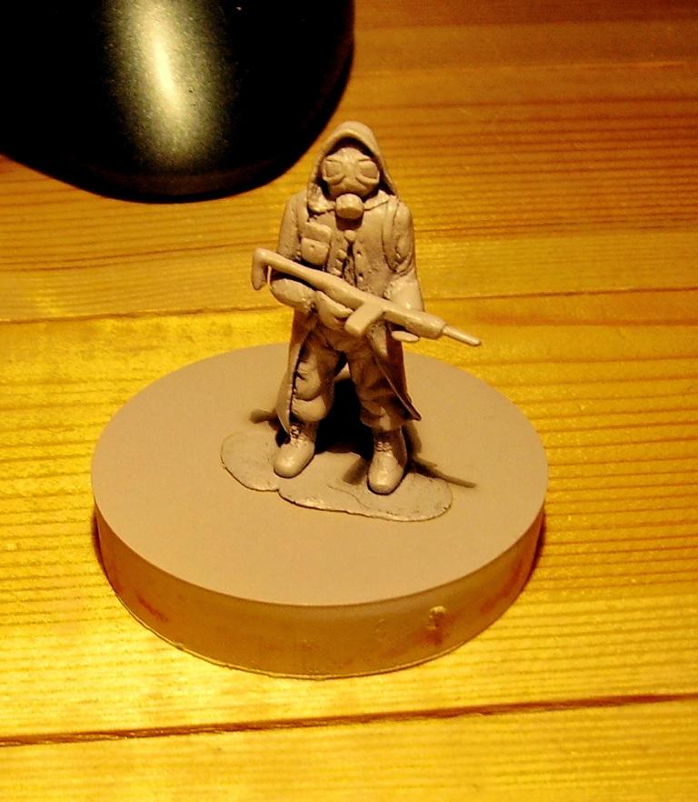 После того, как я поиграл в игру метро 2033, мне захотелось сделать фигурку по этой игре. Так как под рукой не было термопластики, то я начал делать фигурку из эпоксилина. Эпоксилин, впрочем, лучше термопластики по прочности. По крайней мере, я лепил все остальные работы из детской термопластики, поэтому фигурка из эпоксилина получилась тверже и крепче. Фигурка каркасная. Сделана полностью из эпоксилина. Оружие рюкзак тоже пришлось лепить из эпоксилина. Работа не покрашена. Эта тема, что-то вроде скульптуры.То есть фигурка сделана, но не покрашена. Подставка уже сделана, но фигурка не закреплина на ней.