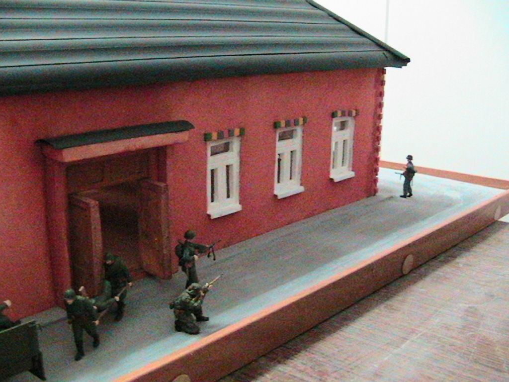 Да, сам.Возможно здание великовато, забор- пенопласт и зубочистки, газон наклеен пенопласт и сверху покрытие трава(опилки +пва+колер)