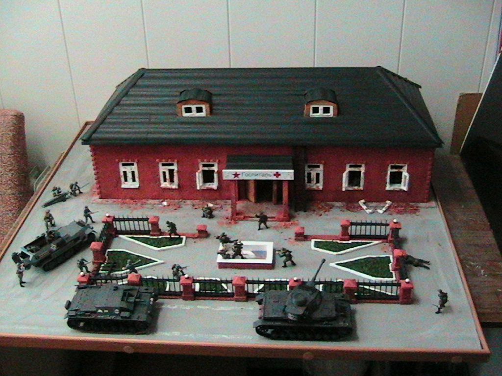 Вот еще раз посмотрел - было бы лучще смести всю эту пехоту и танки а вместо них во дворе медсестер и раненных солдат. Была бы нормальная диорама фронтового госпиталя - а так вышло "кино и немцы"