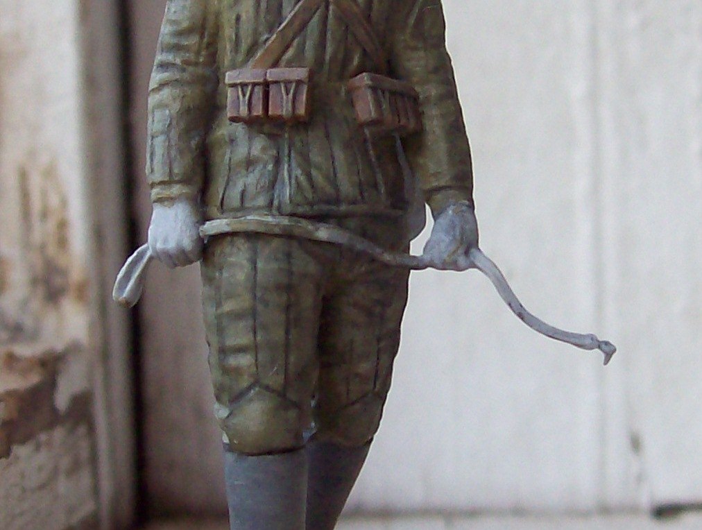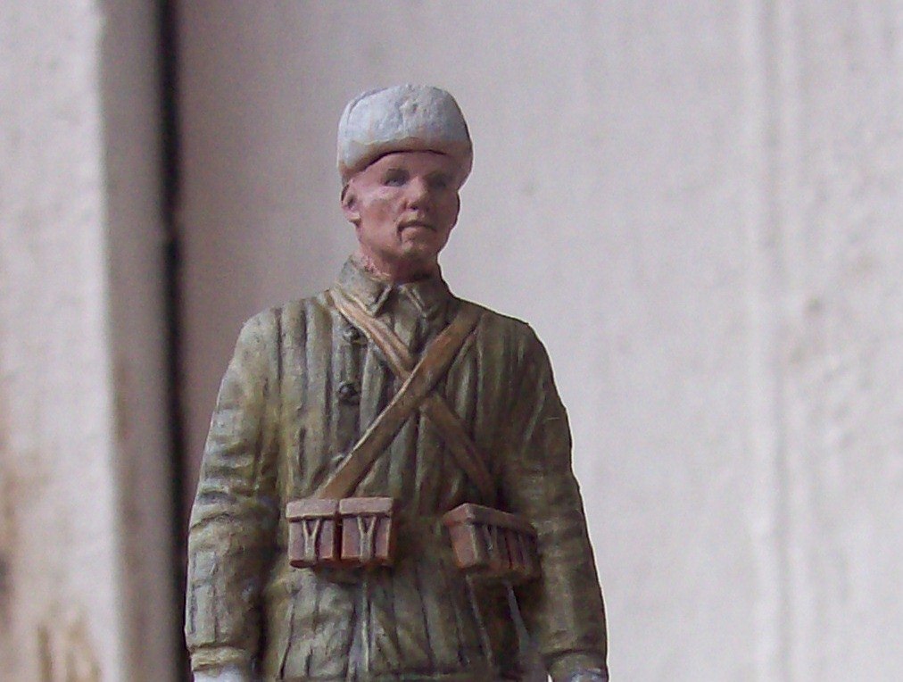 Действительно хорошо вышло, вы молодец, одежда и омуниция на 5+. Обратите внимание на валеночки, пообтрепайте слегка, заплатку сделайте, а то как будто только что скаьали их. Удачи!