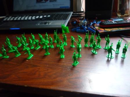 При заявленном масштабе фигурок и размере основания, чтобы показать основные подразделения, придётся каждое из них изображать очень условно - буквально по 2-3 человека. Иначе они просто там не разместятся.